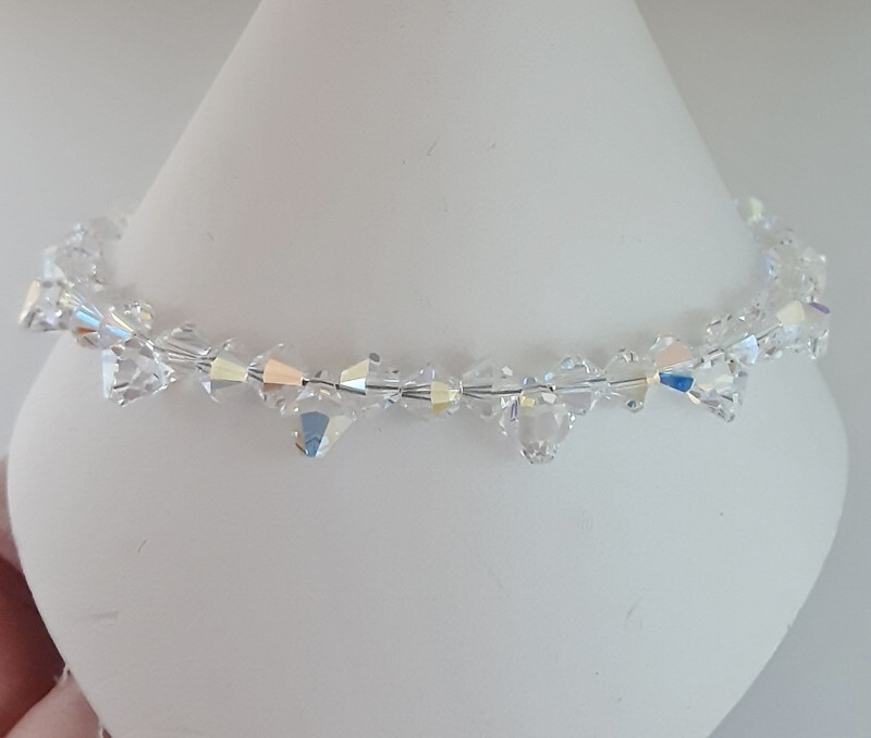 Classy*Crystals Bracelet made with Swarovski® Branded Crystals Sparkly Crystal AB Bracelet with feature Aurora Drops Approx 18cm's + Extension Chain OR Custom made shorter or longer up to approx 21cms Made with very hard to find Swarovski Beads & Pendant Drops - 5mm & 6mm Solid .925 Sterling Silver Lobster Clasp & findings Also available in Anklet size Presented in an Organza Bag .