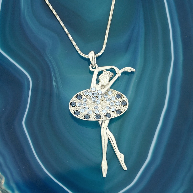 This stunning blue Swarovski crystal ballerina pendant is absolutely breathtaking! The delicate details and sparkling stones catch the light beautifully, making it a perfect statement piece. The 18" chain sits just right, and the lobster clasp feels secure. It arrived in a lovely jewelry box, making it gift-ready—ideal for birthdays, anniversaries, or just treating yourself. The craftsmanship is impressive, and the silver plating gives it a luxurious finish. Lightweight yet durable, it’s comfortable for everyday wear but elegant enough for special occasions. Definitely worth every penny—such a gorgeous, high-quality piece!