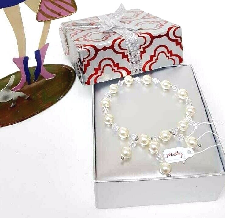 Bracelet Swarovski pearls 8m.Cream Crystal PEARL Bracelet Jewelry, High Quality Perfect for you or for somebody is special in your hearth. Nice packing. Fast and free. First Class Shipping Beautiful Bracelet with genuine 8m Swarovski pearls with Bicone Swarovski beads 4m. Brings the beauty of light that is reflected in the crystals with a perfect combination of shampagne-colored pearls that allow you to combine with all kinds of dress color, You will highlight and shine with this beautiful bracelet made especially for you. With the quality that only a piece of pure swarovski can give you. Description. 13 pearls of 8m Cream Cristal color around the bracelet and 4 more pearls that hang from the bracelet (17). Next to each pearl is a crystal bead srarovski Bicone of 4m, 12 crystal beads and 3 more outside, (15). beads inserted with clear strech cord. You will receive this bracelet in a nice gift box This beautiful bracelet comes with quality assurance, it is a product of the international energy specialist Mathy Kirner. Returns: The warranty of this product allows you if in 69 days of being purchased it is broken, you can return it and it will be exchanged for another one.