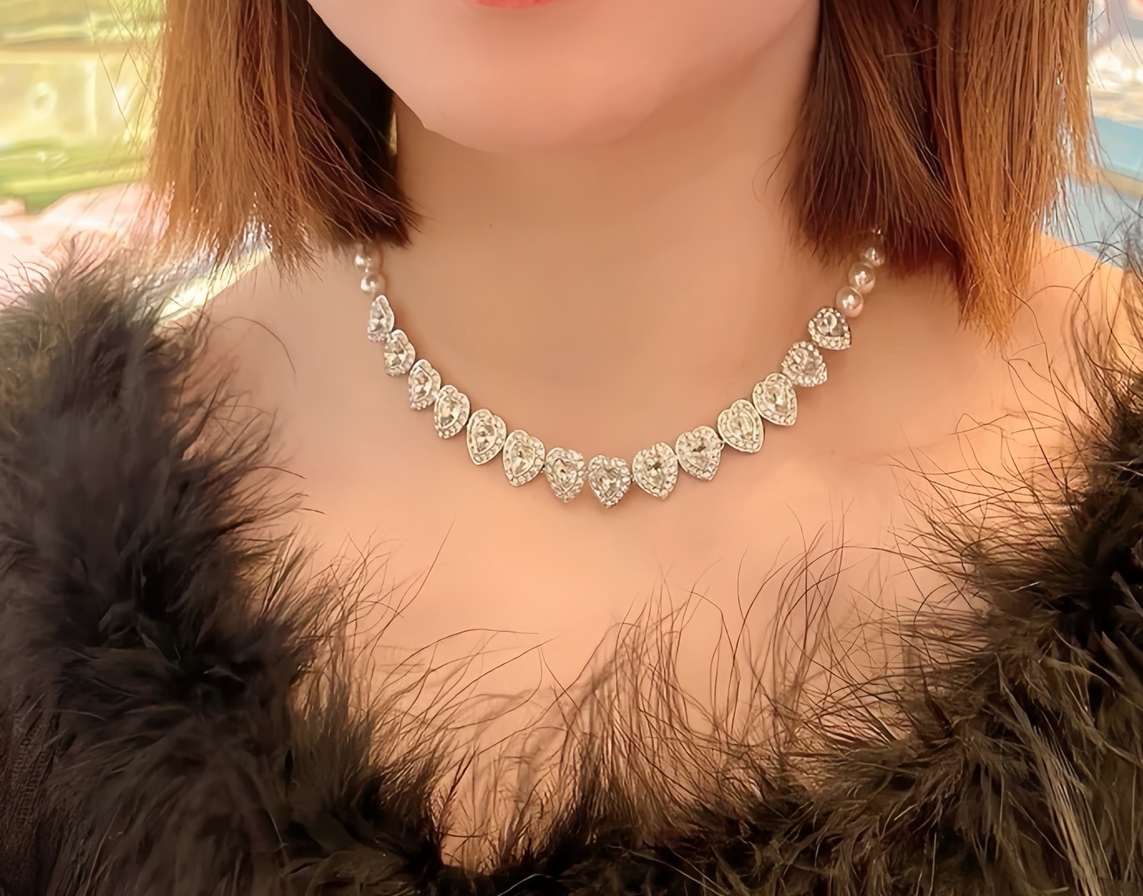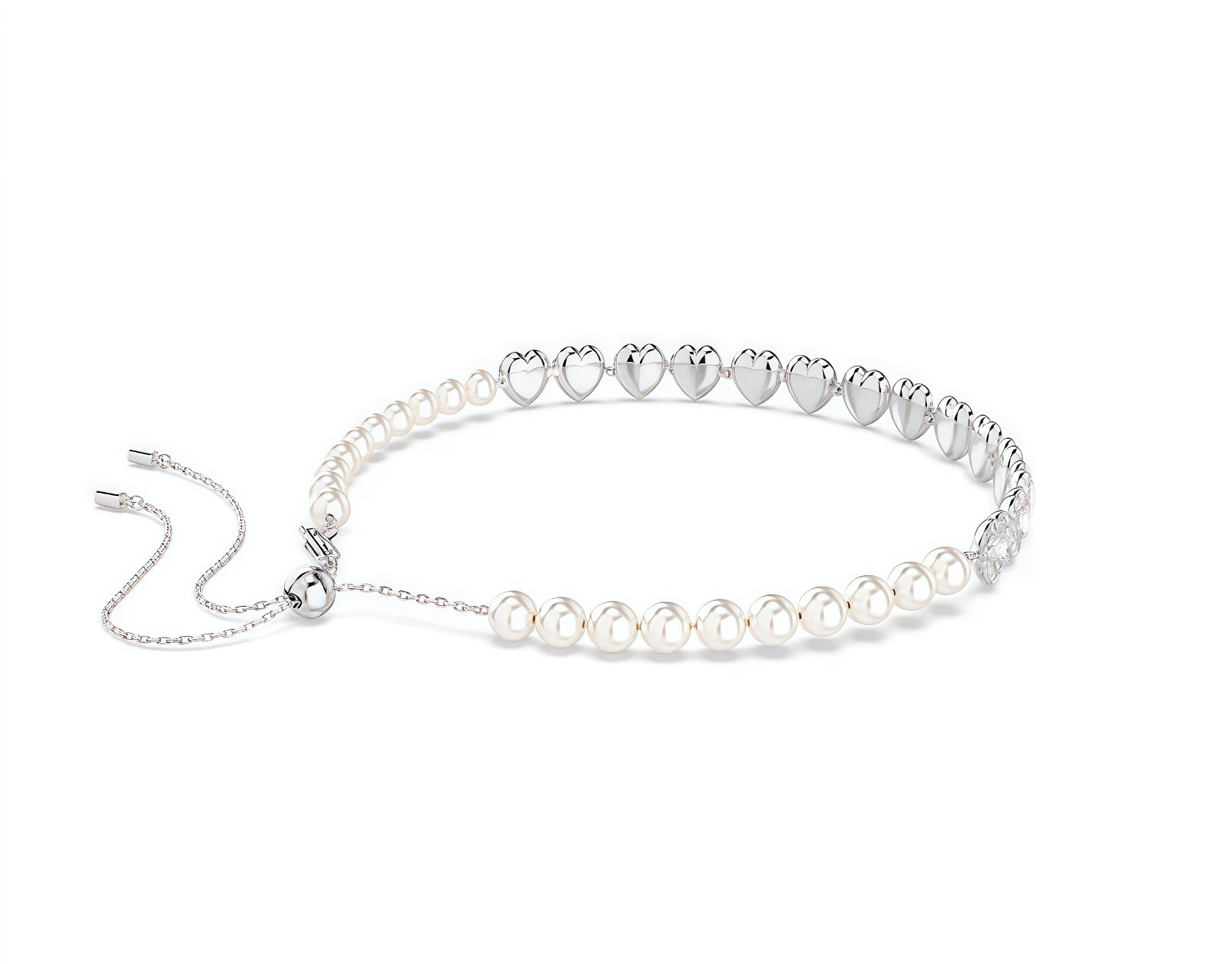 Swarovski Heart-shaped Pearl and Crystal Necklace for Women Necklace length: 30 - 44cm (Adjustable)
