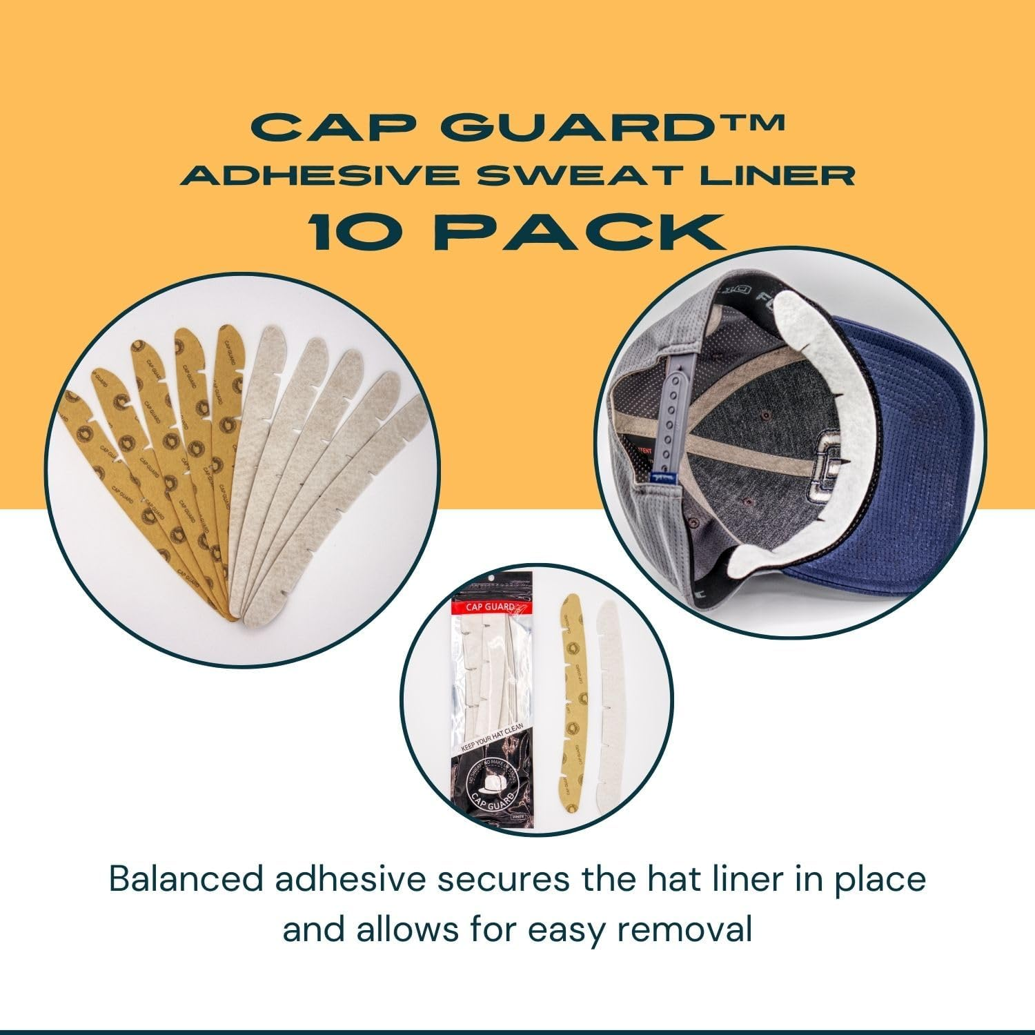 Ultimate Protection: Shields your hat from sweat, makeup, and dirt, preventing staining and prolonging its lifespan Made To Fit All Golf Hats and Baseball Caps: Grooved edges help the liner counter and conform to any hat shape Comfortable & Lightweight: Made from soft, lightweight polyester material, these liners provide maximum comfort without adding bulk Easy to Use: Simply peel off the adhesive backing and apply the liner to the inner band of your hat Removable: Balanced adhesive secures the hat liner in place while allowing for easy removal Disposable Convenience: Each liner is disposable, making it easy to maintain hygiene and freshness. Perfect for busy athletes and outdoor enthusiasts Introducing the solution for maintaining the pristine condition of your favorite hats – Cap Guard Disposable Sweat Liners. These liners are made to protect your golf hats and baseball caps from sweat, makeup, and dirt, ensuring they stay clean and fresh for longer.