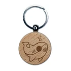 Sweet Kawaii Chibi Shark Engraved Wood Round Keychain Tag Charm