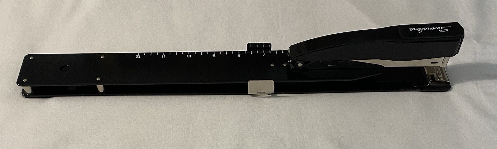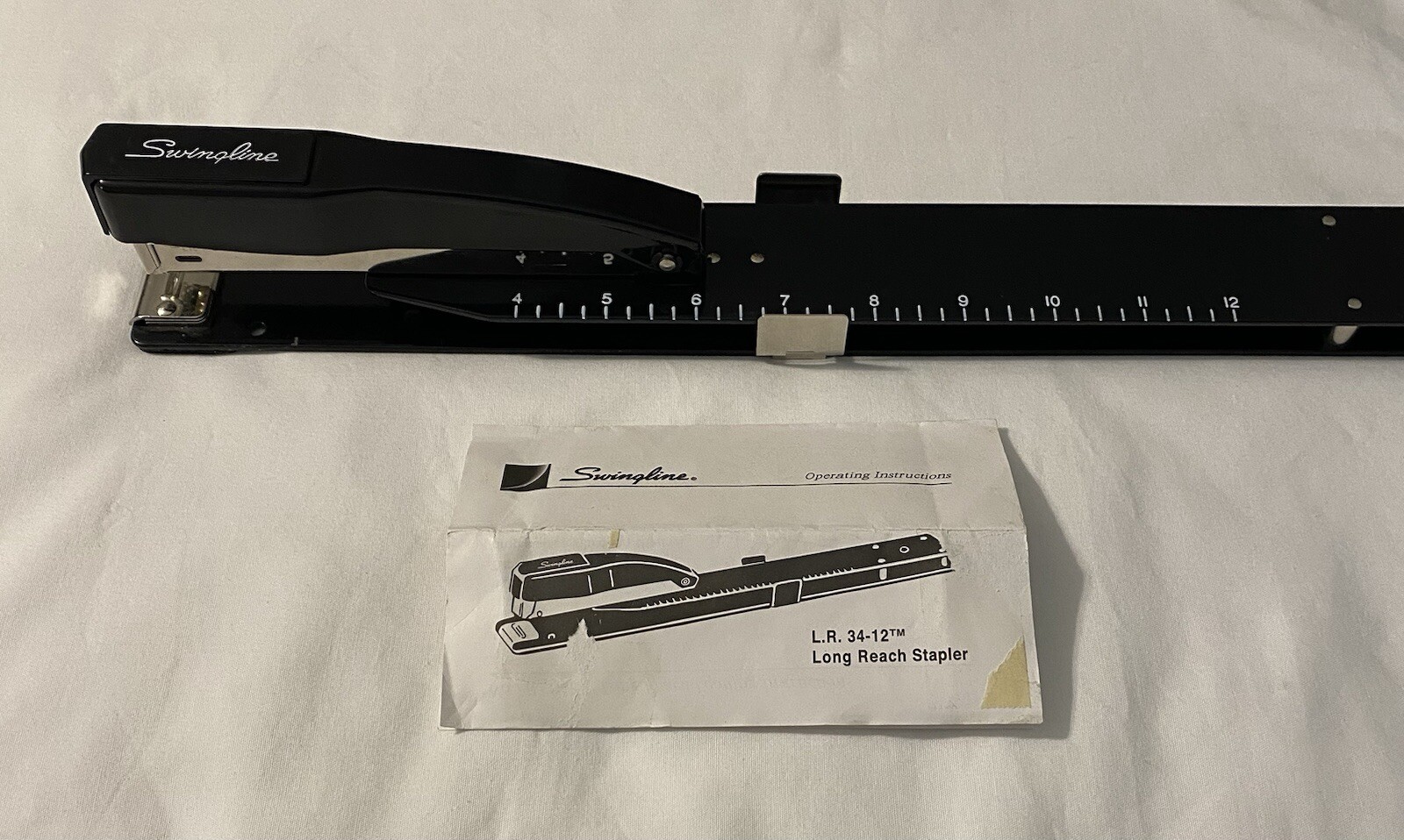 This is a Swingline Long Reach Stapler that can staple up to 12 inches. It is in excellent condition, making it a reliable choice for your stapling needs. Ideal for office settings, it offers a longer reach for stapling larger documents efficiently.