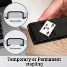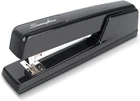 PREMIUM METAL STAPLER – All-metal, Black stapler is designed for durability. A specially crafted inner rail always delivers jam-resistant, accurate stapling you can count on. DESIGNED FOR DESKTOP – Classic stapler is intended for desktop use. It holds a full strip of 210 staples. A helpful low-staple indicator lets you know when it's time for a refill. SECURES 30 SHEETS – This high-performing stapler fastens up to 30 sheets of paper and works best with standard size Swingline S.F. 4 Premium Staples. The staples have standard 1/4" length legs. TACKING & PINNING – Tack papers to bulletin boards with ease: unlatch the stapler and you're ready. The stapler can also produce pointed staples for temporary pinning: simply reverse the anvil. BUILT TO LAST – Swingline stands behind this high-quality stapler with a 100% performance guarantee and a limited lifetime warranty. The renowned Swingline 747 Stapler is built with all-metal construction for dependability and strength. A specialized inner rail delivers reliable, jam-resistant stapling. Stapler holds a strip of up to 210 staples. The helpful low-staple indicator lets you know when it's time for a refill. This stapler secures up to 30 sheets of paper and works best with standard sized Swingline S.F. 4 Premium Staples. While generally designed for desktop use, the 747 stapler is also great for tacking and pinning. It's easy to tack papers onto a bulletin board or other vertical surface—simply open the stapler 180 degrees by pressing a release at the bottom, and you're ready to tack. This stapler also easily produces pointed staples for temporary pinning. Reverse the anvil by pushing and rotating the adjustable knob at the bottom and press. Swingline backs this stapler with a 100% performance guarantee and a limited lifetime warranty.