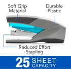 Swingline Stapler, Optima 25, Full Size Desktop Stapler, 25 Sheet Capacity, Features: PREMIUM STAPLER: This gray and blue stapler’s durable plastic housing protects the internal metal stapling mechanism for long lasting, reliable stapling you can count on DESIGNED FOR DESKTOP: Ideal for use on a desk or any flat surface This stapler holds a full strip of 210 staples A helpful low staple indicator lets you know when it's time for a refill SECURES 25 SHEETS: Optima fastens up to 25 sheets of paper, and works best with Swingline Optima or SF 3 staples, with standard ¼ Inches length legs REDUCED EFFORT: Requires less force to operate than traditional staplers, allowing you to staple more sheets with less effort Soft, ergonomic grip ensures comfort while stapling QUIETER STAPLING: Quiet, sturdy stapler serves your business without noisy interruptions Description: With durable gray-and-blue plastic housing to protect the metal stapling mechanism, the Optima 25 stapler is built to give you long-lasting, reliable stapling. This stapler holds a full strip of 210 staples. Sleek stapler is designed for desktop use. A helpful low-staple indicator lets you know when it's time for a refill. Optima fastens up to 25 sheets of paper and works best with Swingline Optima or S.F. 3 staples, with standard ¼” length legs. The Optima 25 design requires less force than traditional staplers, so you can save your muscle for something that matters. Soft, ergonomic grip ensures comfortable stapling. Quiet stapler is designed to be less disruptive in offices and classrooms. Tasteful blue and gray coloring.. Payment: We accept PayPal and all major credit cards. “Buy It Now” items require immediate purchase. Shipping: Most items ship within 1 business day of received payment. Shipping is free unless you upgrade your shipping speed at checkout. You will receive tracking information within 48 hours of shipment. Returns: If you need to return your purchase, please do so within 30 days of receiving your item. Please contact us for an RMA number. We will not accept returns without an RMA number.