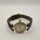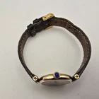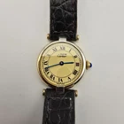 This stunning vintage Cartier watch is an absolute dream! The elegant gold dial with Roman numerals looks so sophisticated, and it's in fantastic condition for its age. It keeps perfect time and comes with the original box - a true collector's piece that feels luxurious yet wearable every day. I'm completely in love with this timeless beauty!