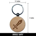 Sword Blade Fighter Fantasy Weapon Engraved Wood Round Keychain Tag Charm