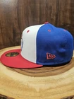 Elevate your headwear collection with the Syracuse Mets New Era 59Fifty Fitted Hat. A timeless piece of fan gear, this cap comes in a striking red/white/blue color scheme, featuring the bold graphics synonymous with Minor League Baseball. Sized at 7 3/8, it provides a snug, comfortable fit perfect for game day or any casual occasion. Crafted for durability and style, this baseball cap boasts a solid pattern and is an ideal accessory for various events, from a day at the office to a night out. The hat's congolene features ensure breathability, making it a versatile choice for travel, parties, and more. Whether you're a streetwear enthusiast or a dedicated baseball fan, this cap is a must-have addition to your wardrobe.
