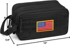 Separate Multiple Pockets: This toiletry bag has dry and wet compartments; The large main compartment keeps dry items; The small waterproof pocket is perfect for storing wet towels and toothbrushes; 2 interior mesh pockets and 3 interior elastic loops keep bottles stand upright and beautifully organized Large Capacity: Dimension: 10 x 4.7 x 5.8 inches; This travel toiletry bag is big enough to hold your essentials from shower gel, face wash, toothbrush, floss, and mouth wash to razor; Wide opening of dopp kit shaving bag makes everything easy to access Sturdy Material: This mens toiletry bag is made of 900D water-resistant fabric for long-wearing durability and easy cleaning; Rectangular shape and long-lasting construction allow it to sit upright Practical Designs: This mens travel bag toiletry features a convenient side carrying handle; The MOLLE design of the front pocket lets you attach small pouches, water bottle pouches, and accessories Multipurpose: Tactical-looking on the outside, this tactical toiletry bag is lightweight and versatile; This toiletries bag is suitable for travel, camping, gym, tools storage, medicine storage Product Description Tacticism Travel Toiletry Bag Separate Multiple Pockets: dry and wet compartments Large capacity: 10 x 4.7 x 5.8 inches Sturdy Material: 900D water-resistant fabric Practical Designs: carrying handle & MOLLE design Multipurpose: suitable for travel, camping, gym, tools storage, medicine storage Toiletry Bag for Men--Thoughtful and Convenient Design