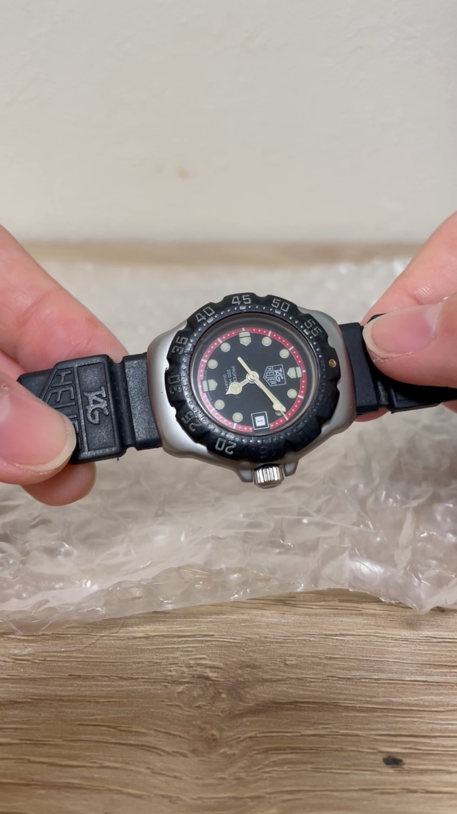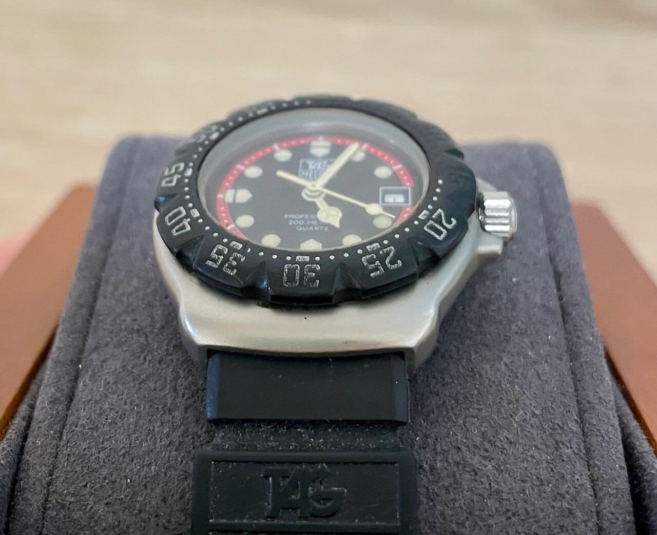 Bezel Color: Black Style: Sport Type: Wristwatch Movement: Quartz Features: 12-Hour Dial, Date Indicator, Water-Resistant Department: Women Dial Color: Black Customized: No Case Size: 27 mm Brand: TAG Heuer Reference Number: 374.508 Band Material: Rubber Display: Analog Case Color: Silver Model: TAG Heuer Formula 1 Band Color: Black