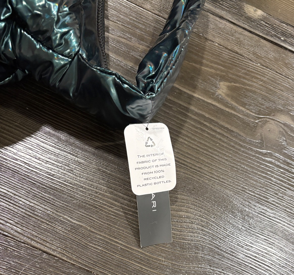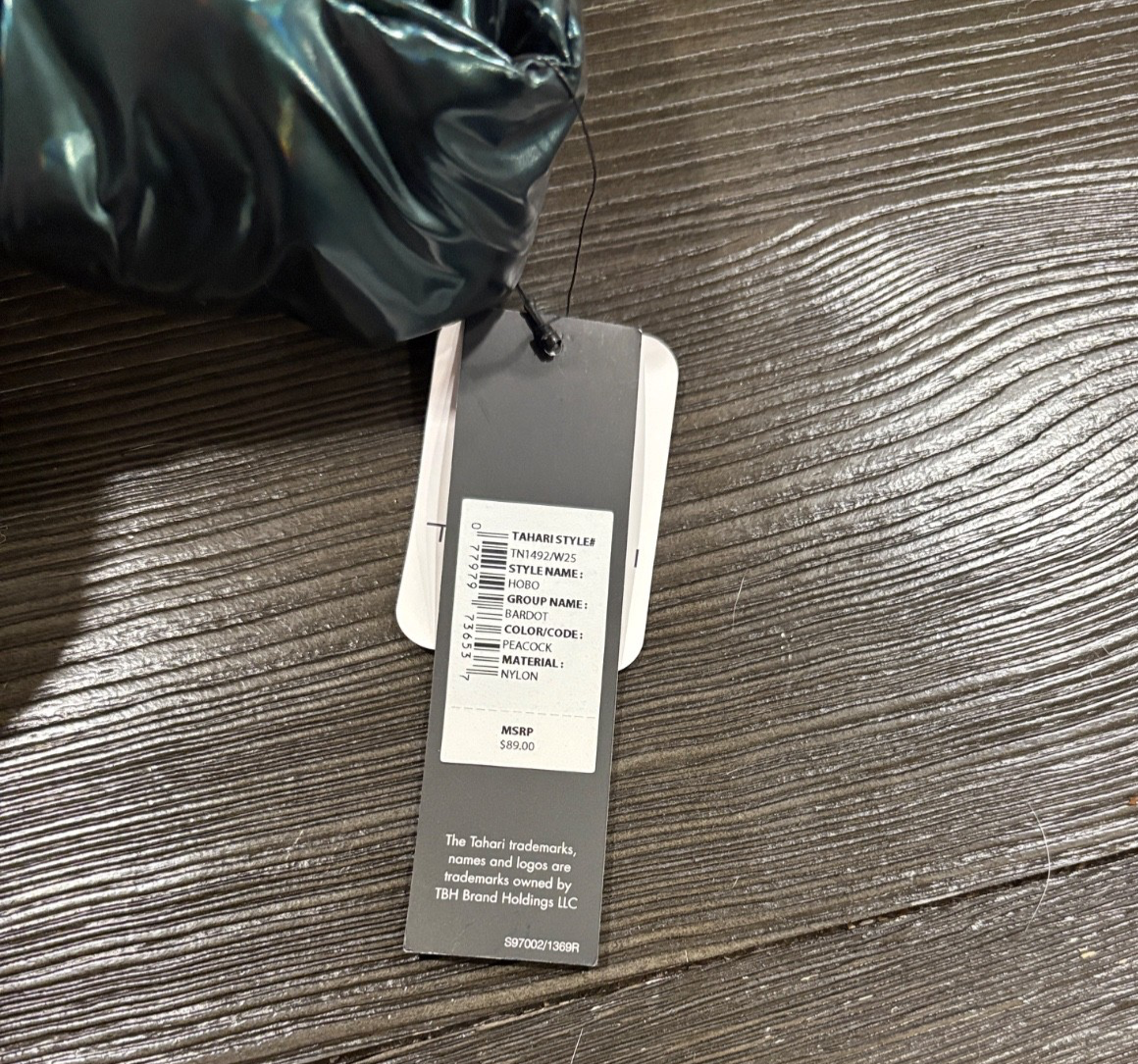 The TAHARI Peacock Hobo Bardot Shoulder Bag in iridescent forest green is a stylish and versatile accessory for women. This large rectangular bag features a zip closure and a green nylon shoulder strap for easy carrying. The iridescent finish adds a touch of glamour, while the bohemian theme and solid pattern make it a trendy choice for any outfit. With inner pockets for organization and durable nylon exterior material, this bag is both practical and fashionable, perfect for everyday use.