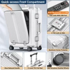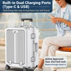 Description Create suitcases suitable for different groups of people, develop different functions and styles, and apply to the needs of the public at the same time, so that you become the focus of the crowd. 【Portable Carry-on Luggage】Size:21.5*9.5*14.5 inch, about 45L capacity, can hold toiletries, personal clothing, shoes, bags, etc., inside lining containing dry and wet separation storage 【Function Design】With Cup holder&USB Port & Front Opening Door & TSA Lock & 360° Spinner Wheels & Aluminium Alloy Corner Protector & Multifunctional Lining & Dry and Wet Separation Storage 【Practical Suitcase】The luggage cover USB Port can be connected to a mobile power supply to charge the phone & Front opening door, there are many compartments for computers and other items that need to be accessed at any time. The inside lining of the suitcase has many different compartments to help you sort and organize your clothes 【360°Spinner Wheels】 360° spinner wheels, which can be turned freely, allow you to enjoy the joy of moving the journey and keep the mood happy while dragging the suitcase 【Unique Concept】Create suitcases suitable for different groups of people, develop different functions and styles, and adapt to the needs of the public while making the suitcase convenient and practical