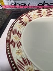 This TEMPTATIONS 10” dinner plate is a beautiful addition to any table setting. The plate features a stunning floral pattern in vibrant red, with a basketweave theme that adds a touch of elegance to any occasion. Crafted from high-quality stoneware, this plate is both oven, microwave, and dishwasher safe, making it a practical choice for everyday use or special occasions. The round shape of the plate is perfect for serving a variety of dishes, and the glossy finish adds a touch of sophistication to any table setting. This original, licensed reproduction is part of the Old World Basketweave product line, and is produced using traditional pottery techniques in China. With a printed backstamp and a production style that combines earthenware with modern technology, this plate is a must-have for any collector or anyone who appreciates beautiful, high-quality dinnerware. This is a preowned replacement plate . Please see photos for condition. Please feel free to contact us with any questions before purchasing.