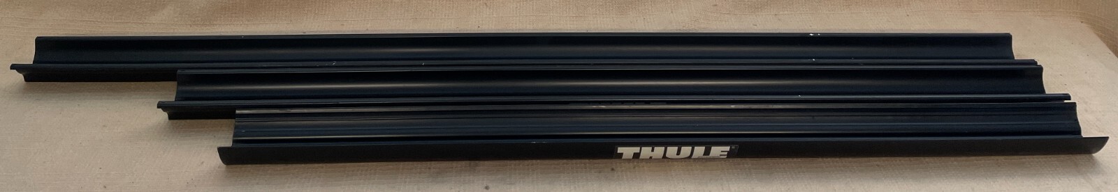 You are buying a Single pre-owned THULE Wheel Tray. We have a variety in multiple lengths. If you need End Caps, Wheel Straps and/or Fork Mount Heads, visit our eBay store. Please see pictures, condition description, and Specs below for further details. Shipping discounts apply for multiple wheel tray purchases. SPECS 43"- Peloton, Echelon, V2, Velo Vise wheel tray- Width is 2-3/4" 47"- Prologue wheel tray- Width is 2-15/16" 56"- Sidearm, Big Mouth, Standard Upright Bike Carrier wheel tray- Width is 2-15/16" 47" and 56" wheel tray models use same end caps (End caps are not included with your purchase, but they are available in our store for purchase) At Rack 'n Roll, we specialize in new and pre-owned Yakima, Thule, RockyMounts, Kuat, & Rhino Rack components. We focus on hard-to-find and discontinued parts that you might need to complete your rack build-out. Check out our store and other auctions for all your rack-related needs. We pride ourselves on offering some of the best on eBay. Don't spend retail for high-end racks. Save the landfill...Re-purpose...Recycle...Get outside! Let us know if you have any questions. We'd be happy to answer. Good luck! ITEM CONDITIONS ARE AS FOLLOWS : NEW - Never used. Looks and functions as new. Item may or may not be in original packaging, with or without original tags/labels. (10-out-of-10 Rating) --> 100% usable life remaining MINT - Nearly indistinguishable from "New", but may have been used once or twice. (9.5 Rating) --> 95% usable life remaining EUC - Excellent Used Condition - Not quite MINT and has been used. It will show slight signs of wear and use that have a minor affect on presentation. This may include minor scratches, discoloration, chipped paint, etc. (8.5-9.0 Rating) --> 85-90% usable life remaining VGUC- Very Good Used Condition- More noticeable scratches, discoloration, chipped paint, etc. than an EUC item. (8.0-8.5 Rating) --> 80-85% usable life remaining GUC - Good Used Condition - Shows signs of prior use, but is still fully functional. Scratches, discoloration, chipped paint, etc. will be significantly more pronounced than an EUC item. (7.0-8.0 Rating) --> 70-80% usable life remaining FUC - Fair Used Condition - Similar or more signs of prior use than GUC items, but there may be some functional deficits. The item still works, but the functional deficit may make it slightly harder to operate, or function less effectively, than items in the other categories. For example, a very rusty buckle on a wheel strap, a hairline crack on a fairing, significant split rubber on a cross/load bar, etc. (6.0-7.0 Rating) --> 60-70% usable life remaining PAYMENT : With a winning bid, you agree to pay for your auction within 2 days of the close of auction. If I receive no contact from you within 72 hours, your item will be relisted on day 4 of non-payment. Positive feedback will be left for all positive transactions. All payments will be processed through Ebay's MANAGED PAYMENTS system. RETURNS : Like all of my auctions, this item is 100% money-back guaranteed (except for S&H and insurance). IF YOU WANT A REFUND, I MUST HEAR FROM YOU WITHIN 20 DAYS OF DELIVERY CONFIRMATION. Refunds are valid until 30 days from receipt of product. Items must be returned in original condition. SHIPPING : Items ship via USPS First Class (under 1 lb.), Priority Mail (1-4 lbs.) or FedEx Home/Ground (over 4 lbs.). I ship within 24 hours of payment. I will email you if there are any delays with your shipment. THE STANDARD FLAT RATE AS QUOTED IN THIS LISTING ONLY APPLIES TO THE US LOWER 48 STATES. THERE MAY BE--AND USUALLY ARE--ADDITIONAL SHIPPING CHARGES TO ALASKA, HAWAII, AND PUERTO RICO. THESE CHARGES WILL BE INVOICED TO YOU BASED ON DIMENSIONAL WEIGHT AFTER PURCHASING. International Shipping goes through eBay's Global Shipping program. Please refer to the Global Shipping policies for specifics on pricing and delivery times. I DO NOT CONTROL THIS PRICING CALCULATOR--EBAY DOES. I will not quote international shipping pricing outside the Global Shipping program.