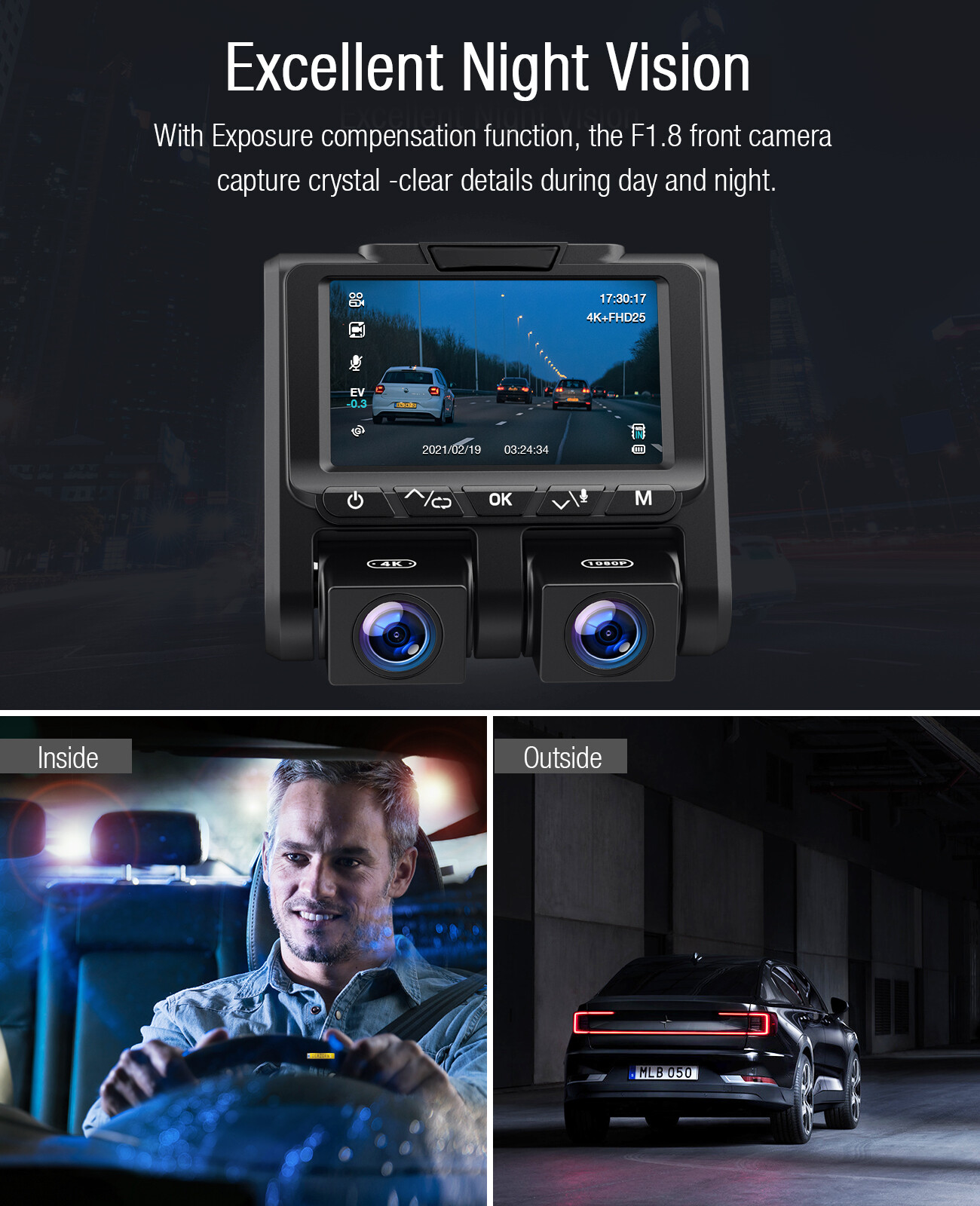 You may also like TOGUARD Dual Dash Cam 1080P+1080P Front and Inside Car Driving Camera 64GB Card 52.69 USD Free shipping TOGUARD 4K Dual Dash Cam UHD 2160P+1080P Front Rear Car DVR Camera night vision 67.59 USD Free shipping TOGUARD 12" Mirror Dash Cam 4K GPS Backup Camera Front and Rearview DVR Recorder 79.29 USD Free shipping TOGUARD 3 Channel 4K GPS Dash Cam Car Recorder Camera Night Vision G-Sensor 69.41 USD Free shipping 9"2.5K Dash Cam Car Stereo Radio Wireless Apple Carplay&Android Auto+Rear Camera 89.21 USD Free shipping TOGUARD Dual Lens 4K Dash Cam Front Rear Car Video Camera Night Vision G-sensor 49.29 USD Free shipping TOGUARD Uber Dual Dash Cam Full HD 4K+1080P Inside and Outside Car Camera Dash Cams 3" LCD 340° Dashboard Camera with G-Sensor, WDR, Parking Monitor, Motion Detection for Truck Car Taxi US STOCK! FAST DELIVERY! FAST RECEIVED!!! Product Description: TOGUARD BRAND - Monitor What You Concern Trusted by over Millions of homes and businesses since our establishment in 2009, TOGUARD is an industry leader in Home and Personal Security Monitoring Technology. Whether you need to guard your safety and car, record moments while driving, or keep an eye on car when you leave car, TOGUARD is here to help. Key words: 【 Dual 4K+ 1080P Dash Camera with Audio for Uber TruckTaxi 】Front Camera Resolution: 4K 3840*2160@25fps and Backup Camera: FHD 1920*1080P@25fps, front and cabin in-car dash cameras with Advanced Sony Exmor IMX323 sensor simultaneously record the road and inside the car, which provide sharp high quality video/picture. Dual lens dash cams provide powerful evidence in case you have an accident and single lens can record 2160P UHD video, capturing license plates clear. 【 340° Wide angle & 360° Rotatable Cameras 】Based on the each 180° rotatable dual dash camera, it is more convenient and user friendly for you to adjust the angel. The two 170° wide angle lens captures the whole road and license plates of other cars in front of you from the edges of your windscreen, and recording what is happening in the cabin simultaneously during the day and night. Perfect dual lens dash cams for car, cab driver, taxis, Uber and so on. 【 24 Hours Parking Monitor & Motion Detection 】Triggered by the parking monitor and motion detection, the dual dash cams will automatically turn itself on and starts recording when it detects motion in front of your car or someone crashes your car while it is parked. Excellent audio recording with built in microphone can provide perfect proof if someone damages your car and gives you peace of mind after you left your car. 【 Continuous Loop Recording & G-Sensor 】Seamless loop recording will automatically overwrites the oldest footage and replacing it with the new videos, so there's no need to worry about your memory card running out of storage space. The G-sensor(smart record emergency lock system) is a great feature that if any sudden braking or bumps caused an accident the footage will get locked and saved. This can be used as evidence and insurance claim during car accidents. 【 Super IR Night Vision & WDR & Reliable Service 】The driving recorder with Sony IMX323 sensor, f/2.0 aperture and WDR (Wide Dynamic Range) funtion ensures the clarity of images or videos. You can easy to obtain sharp images and videos even in low-light environments. Also, we support 30 days money back and 12 months warranty, professional after-sale service, you questions will be replied within 24 hours. Warm tips: 1.The built-in battery is very small for safety reasons, not designed to work alone, so please keep it connected to external power supply. 2.We recommend to buy Class 10 or above high speed Genuine Micro-SD card at Amazon's Own or Branded Stores, capacity 32GB. ( SD card not include in the package .) 3.Please f ormat the micro-SD card before the first time use. Format the SD card regularly to prevent “card error” problem. 4.We recommend to use our brand DC5V/2.1A car charger and please don't use car charger below DC5V/2A. Front 4K 3840*2160@25fps Backup Camera: FHD 1920*1080P@25fps front and cabin in-car dash cameras with Advanced Sony Exmor IMX323 sensor simultaneously record the road and inside the car, which provide sharp high quality video/picture. Seamless Loop Recording Auto power on and record while car engine started. Loop Recording will overwrite the oldest footage with the newest one when the memory card approaches to its maximum capacity to get efficient storage management. Dual 170° Lens The 170°wide angle lens front camera captures the whole road and license plates in front of you from the edges of your windscreen, and the 170°inside camera enhances in car at super low light environment. G-Sensor The sensibility adjustable G-sensor(smart record emergency lock system) is a great feature any sudden braking or bumps which is very useful in the event of an accident the footage will get locked and saved. Lens Exchange Turn on to switch A / B Lens Direction. As default, The A lens is facing backward,used to record inside of the car; The B lens is facing forward,used to record outside of the car, cover the road. If you want to switch the direction, you need to manually switch the lens direction, and then turn on Lens Exchange to correct the image direction. Parking Monitor It is used to protect your car after parking. With this function on, after you stop the car and the camera turns off, it stays in standby, when camera detects significant shock, it will automatically turn on and take a short video, then turn off automatically. Motion Detection Turn it on automatically and record when it detects any motion. Note: Please do not turn on motion detection features while driving, this function may make recording intermittent. WDR Wide Dynamic Range: turn on to optimize video quality with wider light range and image details. Package Included: 1x TOGUARD CE45A Dual Dash Cam 1x 3.5m Car Charger 1x Suction Cup Mount 1x 3M Adhesive Sticke