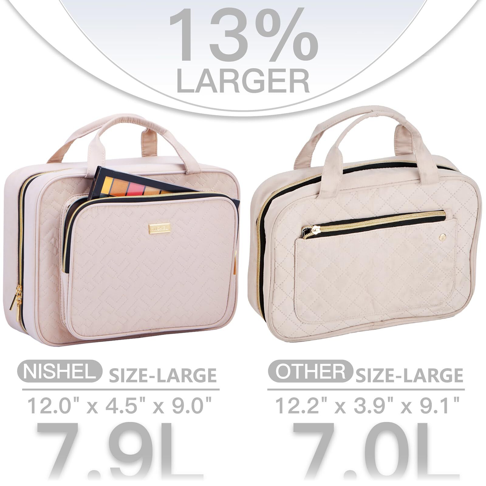 Contact Us Add to Favorite Welcome to our store Free Shipping 30 Days Return eBay Money Back Guarantee Secure Shopping NISHEL Travel Toiletry Bag for Women Large Capacity, Makeup Essentials Organizer, Hanging Case for Accessories, Cosmetics, Pink ABOUT THE PRODUCT SPACIOUS CAPACITY - 12 x 4.5 x 9 inches (rolled), 12.5 x 35.5 inches (open). The space-efficient hanging toiletry bag can hold all your travel essentials: full-sized shampoo, Conditioner, and Skin care products UNIQUE INTERIOR DESIGN - 2 main compartments with mesh pouches and elastic bands hold bottles upright. Different size elastic straps fit for sizes of bottles, easy to grab exactly what you need MULTIFUNCTIONAL COMPARTMENTS - Fully open with a transparent design that gives you a comprehensive glimpse of your stuff. Four different compartments keep your toiletries in place, and a front zipper pocket provides additional storage with convenience STURDY HOOK DESIGN - Special U-shape zippers design, take out the toiletries or zip up the toiletry case quickly. No more unpacking, digging through one bag, and laying your stuff on the bathroom counter. Just hang the bag up, grab what you need, and put it back in it SOFT & LIGHTWEIGHT MATERIAL - The outside material of the toiletry bag is soft to the touch and lightweight. You can pack this reasonably flat if you don't pack too much stuff, making it more suitable for travel. Definitely an ideal Christmas gift for yourself, your family, and your friend (From the manufacturer) Product Description NISHEL Travel Toiletry Bag for Women Large Capacity, Makeup Essentials Organizer, Hanging Case for Accessories, Cosmetics, Pink For more information about the product, please visit the manufacturer's website. TERMS OF SALE Cancellation Per eBay policy regarding cancellation, we are required to accept a cancellation within 1 (one) hour of the time you placed your order. Please understand, that once we process your order, it is very difficult to reverse it, and impossible once we shipped the item. If you need to cancel after your hour expires, we will make every effort, but if we can't catch it before the item ships, you will have to follow the steps laid out in the return policy, once the item arrives. Shipping We offer free shipping with standard shipping. Timeline of delivery time is 4-8 business days including the handling time. We do not offer combine shipping service. Please note, most of our products ship directly from our different suppliers across the United States. Please make sure, to provide the correct shipping address during checkout, as the address cannot be changed after checkout. Double check it to be sure. We have no way of knowing in advance, if the address is incorrect. So we will not take responsibility for any incorrect or undeliverable addresses. Return Policy Y ou have 30 days from the date you received your purchase, to return it for refund, subject to the following conditions: "The date you received your purchase" means, specifically, the date the carrier has on record that they delivered the package to your house. If you are not certain of this date, check online with the tracking number, to see what date is on record for the delivery. The item is considered "returned" on the date the carrier has on record, that they delivered the item back to our warehouse/supplier. We will not allow a refund unless the date occurs before the 30 days have elapsed, so it is important that you act promptly, or else we cannot guarantee the refund. In this case, we may refuse the returned package. ALL returns, regardless of reason, must be in the ORIGINAL packaging, UNLESS the packaging was so badly damaged in shipment that they are no longer usable for that purpose. IF THIS is the case with your shipment, we will need PHOTOS of the damaged package. You should take these photos from several different angles, BEFORE you try to open it. Return unsatisfactory products If you are not satisfied with your purchase or if you just changed your mind, you can return the product, and you must pay for return shipping, and we will also charge back the original shipping that we already paid when we shipped your item. And you must return the item in new or unused, unopened, unmarked, unwashed or original condition with all original material included with the shipment. All returns must be requested through eBay, for return authorization and shipping address. Please note, never send a return without opening a return request , as the return address is different from the original shipping facility address. Undeliverable package The honest truth is that we have no way of knowing if your address is correct. Only you can give us your correct address. So if your address is wrong, or there is no safe place available at your shipping address when the courier tries to deliver your package, we will not accept responsibility for that, so MAKE SURE your address info is correct. Otherwise, we will charge you the original shipping that we paid for your shipment. Feedback from you Your feedback is very important to us. As long as you are happy with your purchase, we would be grateful if you could please leave positive feedback for us. If there is a problem or you are not happy with your purchase, please let us know first and give us the opportunity to resolve it for you. About us Welcome to our store, We sell a wide variety of products. We are very selective with the products we offer for sale. We only sell TOP RATED products that have received the best feedback from other consumers, at least 4 out of 5 stars. We work with the largest suppliers of products to bring you only the best items. We are committed to providing each customer with the highest standard of customer service. Payment Options Copyright ©2018, All rights reserved. Listed by Sku Fetch