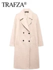 This TRAFZA women's winter coat is a stylish and warm choice for the season. Made of polyester, it features a double-breasted design with long sleeves and a lapel. The long length and formal style make it suitable for various occasions, from workwear to parties. Designed perfectly for staying comfortable and chic during the winter months.
