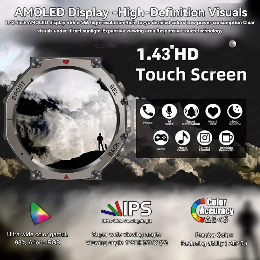 $ 105.08GUHUAVMI 1.75\" AMOLED Smart Watch – GPS, Compass, 10 ATM Waterproof