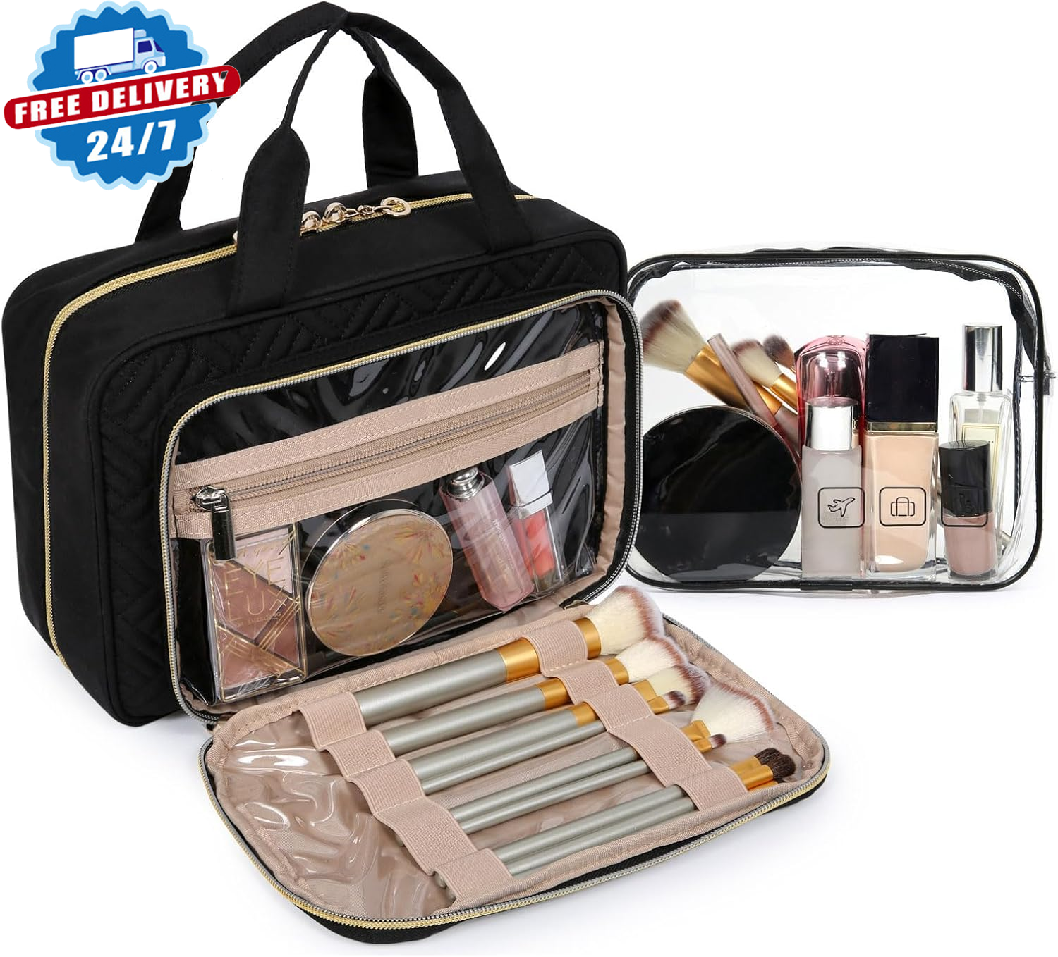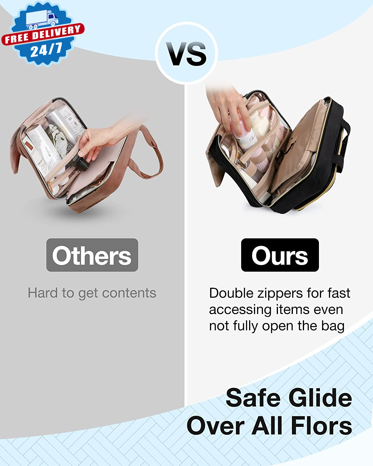 Store New Arrivals Add to Favorite View Feedback Contact Toiletry Bag Hanging Makeup Organizer with TSA Approved Transparent Cosmetic Bag Makeup Bag for Full Sized Toiletries, Medium-Black Description Item model number BM0108129 Color Black Product Dimensions 12.6 x 9.1 x 4.3 inches Country of Origin China Item Weight 1.1 pounds Department Women Size Standard ๐๐๐ซ๐ ๐ ๐๐๐ฉ๐๐๐ข๐ญ๐ฒ: Medium size: Rolled - 11'' x 3.7" x 7.9"; Opened - 9.5'' x 4" x 26.5; Large size :Rolled: 12.2'' x 4" x 9"; Opened: 10.5'' x 4" x 29.8. 4 separate compartments with 1 TSA-approved cosmetic bag ๐๐ซ๐๐ฏ๐๐ฅ ๐ ๐ซ๐ข๐๐ง๐๐ฅ๐ฒ: Separate TSA-approved transparent toiletry bag strictly follows 3-1-1 regulations. Easy and quick to pass through airport security ๐๐จ๐ง๐ฏ๐๐ง๐ข๐๐ง๐ญ ๐๐๐ฌ๐ข๐ ๐ง: Stow-away 360-degree swivel non-slip metal hook for versatile hanging options; carry handle doubles as its hanging strap; two-way zipper closure for quick access ๐๐ก๐ ๐ข๐ง๐ญ๐๐ซ๐ข๐จ๐ซ ๐๐๐ฌ๐ข๐ ๐ง: Inner main pockets with elastic straps hold bottles upright; double zipper compartment is for easy access to the items even if not fully opened the bag; transparent sides are for providing clear overview of contents ๐ ๐จ๐ซ ๐๐๐ซ๐ข๐จ๐ฎ๐ฌ ๐๐๐๐๐ฌ๐ข๐จ๐ง๐ฌ: Convenient and easy-to-carry, great for overnight stay, a long journey, gym shower and outdoor activities Product Description MORE CHOOSE FROM BAGSMART Add to Cart Add to Cart Add to Cart Add to Cart Add to Cart Add to Cart Add to Cart Customer Reviews 4.4 out of 5 stars 67 4.7 out of 5 stars 191 4.7 out of 5 stars 1,890 4.7 out of 5 stars 3,157 4.7 out of 5 stars 14 4.4 out of 5 stars 18 4.7 out of 5 stars 1,520 Price $7.99 $ 7 . 99 $18.74 $ 18 . 74 $20.99 $ 20 . 99 $33.99 $ 33 . 99 $19.99 $ 19 . 99 $19.99 $ 19 . 99 $23.75 $ 23 . 75 Size 8''L x 3''Wx 6.3''H 11'' L x 7.9'' W x 4.7''H 8.7'' L x 7.1'' W x 2.2''H 18.5'' L x 8.7'' W x 11'' H 12.6''L x 6.1''W x 10.3'' 8.7'' L x 7.1'' W x 2.2''H 19.3''L x 6.3'' Wx 13.8''H Weights 0.8lbs 1.1lbs 1.1lbs 1.8lbs 1.1 1.32lbs 1.3lbs Materials PVC Nylon Peackskin Nylon Polyester Nylon Peackskin Warterproof โ โ โ โ โ โ โ Hanging โ โ โ โ โ โ โ ABOUT US We offer the best prices around on high quality products. Our E-store includes media such as books, movies, music and games while offering electronics, toys, sporting apparel, clothing, tools, general home, garden items and more. SHIPPING We are always working hard to ensure your package arrives as soon as possible. Please understand that some factors like weather, high postal traffic, and the performance of shipping companies are outside of our control. We offer free shipping to the lower 48 states and ship within 2 business days of payment, usually sooner. We do not accept P.O. Boxes. Please provide a physical address. RETURNS We offer a 30-Day Return Policy on items which you are not completely satisfied with. You have the option for a full-refund or an exchange of the item. No returns are available on items shipped outside of the USA. PAYMENT We accept PayPal. CONTACT US This page content is yet to come Please ad us to your favorite seller and visit again later Thank You CUSTOMER SATISFACTION We try our very best to make sure every customer is completely satisfied. If there's a problem, message us! We're happy to help.