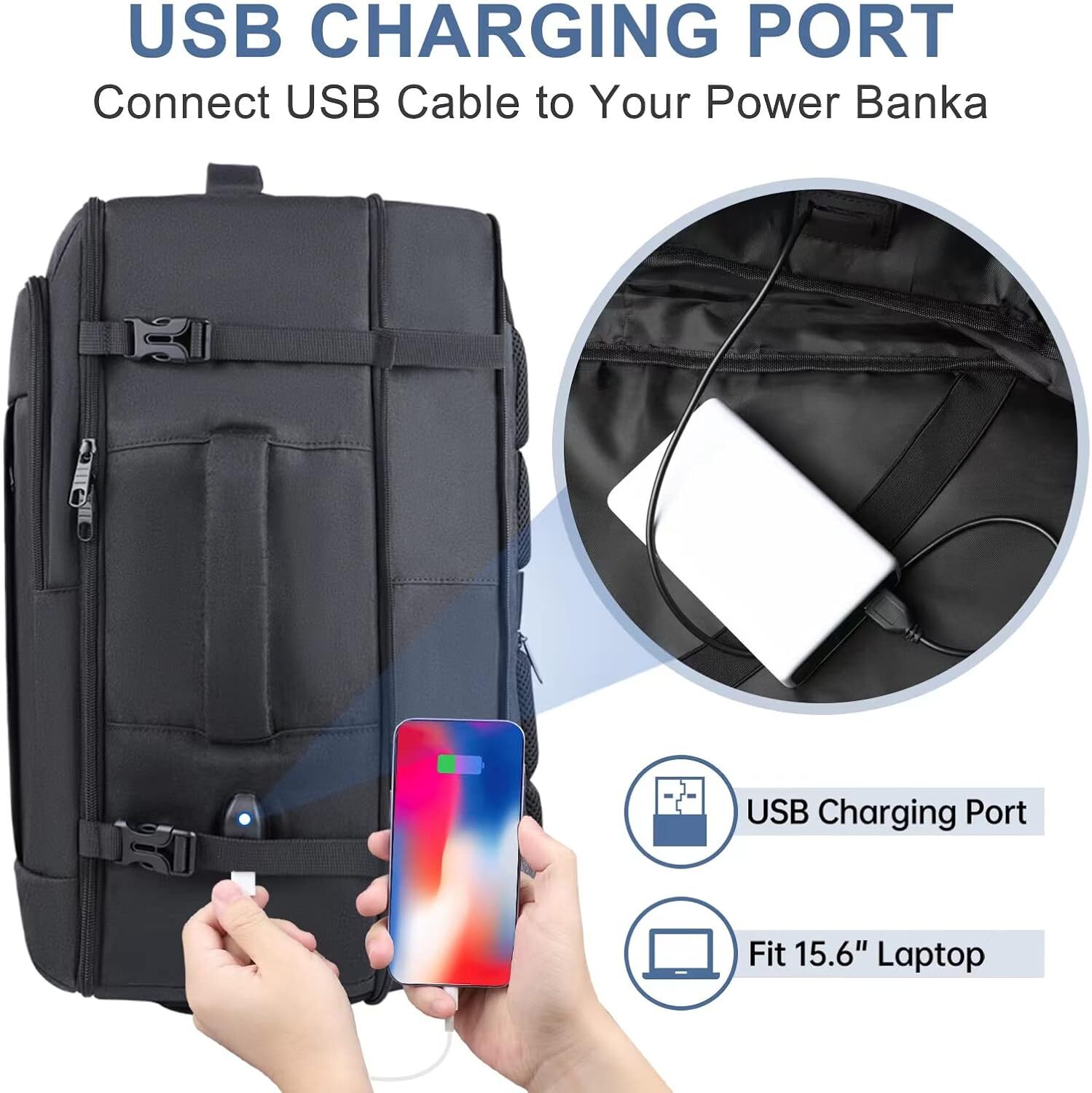 Product Description Luggage Backpack TSA Flight Approve... Carry On Backpack 50L Travel Backpack Carry On Backpack, 50L Travel Backpack, Luggage Backpack TSA Flight Approved Laptop Backpack for Men & Women, Large Expandable Backpack 40L Daypack Lightweight Business Weekender Bag, Black EXPANDABLE & EXTRA LARGE CAPACITY:This 50L carry on backpack with expandable design offers you more capacity for packing. Unzipping to get 50L storage, then can easily accommodate clothing, shoes, and travel essentials, etc. It fits overhead and under seat while on state of standard carry on size, is an ideal choice for men, women, weekend traveler, or occasional vacationer. This versatile carry on backpack also meets airline carry-on requirements, for airlines such as Spirit, Jet Blue, etc. CONVERTIBLE & TSA DESIGN: This carry-on backpack is multifunctional and can transform from a backpack to a suitcase style, providing you with a more flexible carrying experience. It comes equipped with a separate laptop compartment that can be fully opened to 180 degrees, making it easy and quick to pass through airport security checks and saving you valuable time. Additionally, it features a luggage belt on the back, designed for easier carry-on during international travel or on cruise ships. ROOMY SPACE & SHOE COMPARTMENT: Dimensions 19.5*14*7.5 inch(Expandable to 9.5inch), Light Weight 2.5lbs. One shoe compartment is crafted at the bottom of this carry on to keep the shoes separately and everything else clean. This shoe storage area is wide and deep enough to accommodate men's and women's shoes of size 5-12, which can also be used as toiletries bag and for other uses. MULTI-COMPARTMENT: The carry on travel backpack has a separate laptop compartment, which could hold 17 Inch Laptop and prevent the laptop from moving. Main compartment with double zippers has enough storage room to store clothes or daily necessities for an overnight trip. Multiple pockets for different purposes in the storage bag keep your items organized and easier to find. The best gift choice for Thanksgiving Day, Christmas, New Year, Valentine's Day. STURDY & LIFETIME:The large travel backpack is well made of Water-Repellent and Sturdy Nylon Fabric with metal zippers. Could be survived in different temperatures. Foam padded top handle is comfortable to carry on for a long time. With sturdy zippers and decent stitching, this backpack won't show any defects when on the go, ensuring you an unforgettable weekend getaway. A practical Christmas and New Year gift for your loved one. Contact Us We reply any email messages within 1 business / working days(off-duty at weekend). If you do not get a response from us, then please check your junk or spam mailbox. Our Business hours: Mon-Fri 9:00-18:00, UTC/GMT +8 hour s . Please contact us either by clicking "contact seller" in the "purchase history" section or simply click "ask a question" at the bottom of this page. If you are unsatisfied with our item or service, please contact us before leaving any feedback. We are committed to resolve all issues in a friendly and satisfactory manner. To provide you with better service, please provide the following information in your email: Your ebay ID Order problem, order number For product questions, the eBay article number, the product URL or the product SKU Unfortunately, the eBay guidelines do not allow us to provide a phone number. But if you'd rather call please send us an email. powered by