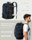 Convertible Carry-On Travel Backpack 1. Flexible Carrying Options Switch seamlessly between a crossbody bag or backpack for ultimate versatility. 2. Airline Approved & TSA Friendly Meets carry-on size requirements and opens 180° like a suitcase for easy access at security. 3. Luggage Sleeve Slide the backpack over your suitcase handle for effortless travel. 4. Comfortable Design Padded shoulder straps and breathable back panel ensure comfort. Elastic chest strap adds support. 5. Expandable Large Capacity Start with 35L and expand to 45L to accommodate all your essentials. 6. Waterproof Aluminum Wet Pockets Separate wet compartments for dirty clothes, towels, toiletries, and more. 7. Laptop Compartment Protect your device with a secure compartment that fits up to a 15.6” laptop. 8. Water Bottle Pocket Side pocket fits bottles up to 40oz for easy hydration on the go. 9. Durable & Long-Lasting Crafted from waterproof, wear-resistant fabric with SBS zippers and double-stitched seams for durability. 10. Tactical Webbing Attach additional accessories with the versatile webbing loops. Embark on your next adventure with the Convertible Carry-On Travel Backpack. Designed with convenience and organization in mind, this backpack features an expandable main compartment that can accommodate laptops up to 15.6 inches, ensuring your valuable devices are protected. The aluminum film wet-dry compartment keeps your essentials separate, while the lightweight and durable construction ensures a comfortable carry. Approved for airline travel, this backpack is perfect for those on the go. With its sleek and professional design, the Travel Laptop Backpack is a versatile choice for both work and leisure trips. 【Quick Laptop Access & Shockproof Protection】Your tech deserves better protection. This laptop backpack features a shock-absorbing, suspended laptop sleeve (fits up to 15.6") to guard against bumps and drops. The side-access design lets you grab your laptop fast, ideal for commuters, students, or professionals always on the move 【TSA Approved & Effortless Airport Travel】Travel smarter, not harder. travel backpack carry on luggage opens 180° flat for quick security checks. No more fumbling at checkpoints. Approved by most airlines as a carry-on, it fits easily into overhead bins. The perfect travel laptop backpack for business trips and weekend escapes. Get through the airport stress-free 【Expandable 35L to 45L Versatility】Pack just right every time. Start the carry on backpack at 35L for daily commutes, or expand to 45L for longer trips. With dual main compartments, two large aluminum wet/dry dividers, and smart organization, this expandable versatile travel backpack adapts to gym days, overnighters, and beyond, without ever feeling bulky 【All-Day Comfort, Built for Real Life】Comfort you'll feel from morning to night. With adjustable padded shoulder straps, a breathable mesh back, and chest support, this commuter backpack stays comfortable even when fully loaded. Multiple grab handles let you carry the travel backpack your way - on subways, through airports, or into your next adventure. Built for nonstop movement 【Durable Materials & Travel-Ready Details】Go anywhere, worry-free. Made from tear-resistant polyester with reinforced stitching and SBS zippers, this durable tactical backpack is built for daily use. Large waterproof aluminum-lined wet/dry compartments keep damp items sealed. Tactical webbing and suitcase straps add convenience, making it perfect for both professionals and adventurers