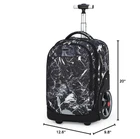 TTBD&SY Waterproof Rolling Backpack for Adult, Backpack with Wheels for Business and Travel Commuter, Carry on Backpack Bag with Laptop Compartment (Black, 22inch) Product Details Color: Black Brand: TTBD&SY MPN: Does not apply UPC: Does not apply EAN: Does not apply Product Dimensions: 12.6 x 9.8 x 20 inches Item Weight: 6.6 pounds Department: Unisex Manufacturer: TTBD&SY Country of Origin: China Capacity: 52 Liters Item Weight: 3 Kilograms Capacity Total: 55 Liters 7 Inch Large Silent Wheeled Easy Climbing Rolling backpack has 18CM(7inch) wider 2.3CM(1inch) thick large silent wheels, noise-reducing, steady, wear-resistant, heavy loading, saving labour and time, easy thru airplane aisles and stair, do not worry the wheels turned sideway, and not worry wear off the backpack, also not worry about making noise Large Capacity Space Multiple Compartments The 55L spacious main compartment can hold a 17-inch laptop and other items, the other zippered multi-pocket organizers provide more space for smaller items. The padded laptop compartment with a nylon buckle cover can accommodate a 15.6-inch laptop. The multi-compartment classification storage design is very convenient for accessing items. There are also concealable mesh pockets on both sides for convenient storage of water bottles or umbrellas Stronger Shoulder Strap And Abs Handles Wheeled backpack's shoulder straps and handles have been reinforced to become very firm, soft sponge cushion, more comfort and more load bearing. Hideaway shoulder strap easy move between cities. Telescoping aluminium alloy ABS handle, better with time, no more worry about handle won't close Waterproof And Tear Resistant Nylon water resistant tear resistant polyester fabric and shock absorber strap design for men, women; It fit to bussiness, travel; It is especially suitable for use in rainy cities Friendly Design The design of multi-directional high-visibility reflective strips on the front and back can make night travel safer. When carrying the backpack, cover the bottom with a wheel cover to prevent dirtying your clothes. Provide a large dust-proof and rain-proof cover for the backpack, protecting it from dust and rain at all times