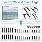 TV Mount Screws for LG TV Stand Replacement Base Screw, TV Stand Screw for LG 27" 32" 43" 49" 50" 55" 60" 65" 70" 75" 86" TV Legs, TV Mounting Screws for LG TV Legs Description: --【Compatibility-Special Design for Lg TV Legs Screw】-- Universal TV mount screws kit compatible with all LG TVs. For LG TV 27LP600B-P 32LQ630BPUA 32LM577BPUA 43UP8000 43NANO75UQA 43UQ9000PUD 49LJ550M-UB 49UK6090PUA 49LJ5550-UC 50UK6300 50UM7300 50UK6300BUB 55UK6090 55UM7300 55UM6910 55UM7300PUA 60UJ6050 60UK6090PUA 65UJ6300 65UJ6050 65UK6090 65UN6950 70UP7070PUE 70UQ9000PUD 75NANO75UQA 75QNED85UQA 86NANO90UPA 86NANO75UQA Models not listed are also applicable. --【All in One Pack】-- This TV stand screws hardware kit includes each part you need to assemble your TV to a stand. The kit set comes with many kinds of screws and washers for LG TV stand base legs. --【Save Your Time】-- The TV stand screws are easy to use and make mounting your TV a breeze. Save a trip to the hardware store to buy screws for your TV or other wall mount bracket. --【Sturdy and Durable】-- This TV stand legs screws kit for LG smart TV comes with strong, durable screws that are resistant to stripping and designed to hold the weight of your TV. --【Package List】-- 1 x Universal TV stand screws kit set for LG TV stand replacement base, 1 x user manual. Material Alloy Steel Item dimensions L x W x H 1 x 1 x 1 inches Exterior Finish Powder Coated Metal Type Alloy Steel