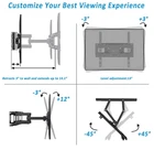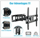 Free eBay listing template designed by dewiso.com Dual Articulating Arms TV Wall Mount Bracket fits to Most 26”-65” inch LED,LCD,OLED Flat Panel TVs, Tilt Full Motion Swivel 14.1" Extension, Max VESA 400X400mm,80lbs,Fits 12/16" Wood Stud Mounting Type Wall Mount Movement Type Articulating Brand EVERVIEW Material Alloy Steel Maximum Compatible Size 65 Inches Color Black Minimum Compatible Size 26 Inches Compatible Devices Television Maximum Tilt Angle 12 Degrees UPC 722737045016 About this item Heavy Duty Unit Fits For 26-65" flat screen Tvs for the most popular sizes 32” 37” 40” 42” 47” 49”50” 55” 65" brand as Samsung, Sharp, Sony, Panasonic, Toshiba, LG, Philips, JVC, Thomson as long as they are VESA compatible.Up To 80LBS,test by 4 times loading based on UL standard, fits VESA200X100mm (8"x4") 200X200mm(8"x8") 300X200mm (12"x8") 300X300mm (12"x12") 400X300mm (16"x12") 400X400mm (16"x16") 400 X 400mm/Fits 12/16" Wood Stud only. Adjustable View Comfortable: Tilts TV Up 3° And Down 12° To Reduce Glare, Swivels TV Left Or Right According To Your Seats Position. Pull Out To 14.1” And Retract Back To 3.0”, Making Your TV Alive To Move. This TV bracket is constructed with good quality steel materials which can provide you durable and safety. Professional design with 4 times load-bearing ,So we are confident in the construction, strength and durability of this tv bracket. It will keep your TV safe. Our wall mount is easy to install and includes a full step by step installation guide and all the standard mounting hardware. And comes with 5 years Warranty. Product information Technical Details Brand Name EVERVIEW Item Weight 9.15 pounds Product Dimensions 16.9 x 16.5 x 3.07 inches Country of Origin China Item model number EV2001SD Is Discontinued By Manufacturer No Color Name Black Specification Met UL Additional Information ASIN B07RN77YL6