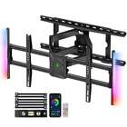 Adjustable LED System: This LED Lights can be controlled via the included remote or app. Over 60000 DIY color options to set the mood for any movie or music genre. Segmented individual colors can be chased in a line, the light bar shows a rainbow-like effect- dancing, jumping, flashing and more multiple modes, bringing you an extremely dynamic and immersive TV viewing /gaming experience Universal Design: tv wall mount fit most 47-84 inch LCD, LED, or plasma flat/curved screens with VESA pattern from 200x100mm, 200x200mm, 300x200mm, 300x300mm, 400x300mm, 400x400mm, 600x200mm, 600x300mm, 600x400mm. It is compatible with TV brands such as , Sony, Sharp, TCL, , Vizio, etc Full Motion TV Mount: Tilting your TV screen up 5° and down 15° to reduce glare, swivel tv ±45° and level adjusts ±3° for maximum viewing flexibility. Retract 3.4” for space saving, extend 14.6” from wall for optimal positioning. tv wall mount can help you feel comfortable during tv time at family gatherings Heavy Duty TV Wall Bracket: Equipped with 6 solid heavy duty arms and premium mount base with strong cold rolled steel, tv wall mount can hold large TVs up to 132lbs, and the ultra-strong tv mounting bracket has passed the load bearing test,which is sturdy and safe Easy Installation: Our TV bracket comes with clear instructions and all hardware in pre-labeled bags, bubble level, installation positioning paper, and 6pc cable ties are good helpers to make the TV brackets mounting easier and quicker. You could install this wall bracket for TV on 16", 24" wood studs or concrete/brick wall quickly(Do not mount on dry wall alone).
