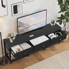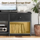 TV Stand with 3 Fabric Drawers for up to 50 Inch TV, " Industrial Media Console, Entertainment Center with Shelves for Living Room, Bedroom, Home Office, Black DS12BB Holds TVs Up to 50": This TV stand is designed to support most small to medium TVs up to 50". It provides a stable surface for models ranging from 40" to 50", making it suitable for various screen sizes in living rooms, bedrooms, or home offices Spacious 3-Drawer Storage: Three fabric drawers and open shelves offer ample storage. Use this TV stand with drawers for game consoles, media players, books, and remotes, helping to organize your entertainment area Sturdy Particleboard and Metal Frame: The combination of high-quality particleboard and a metal frame contributes to the TV cabinet's stability. The surface can support TVs and other items within its 66 lb weight capacity Fits in Multiple Rooms: With compact dimensions of "L x 11"W x "H, this media console fits well in the living room, bedroom, or hallway. Adjustable feet help protect floors and accommodate uneven surfaces Straightforward Tool-Assisted Assembly: All parts are included for setup. The clear instructions and provided tools guide you through the assembly process for this entertainment center with drawers and open shelves