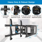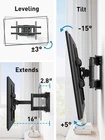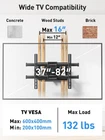 Specifications: supports TV weight up to 132lbs/ 60kgfits VESA mounting hole patterns: 600X400mm/ 400X400mm/ 400X300mm/ 300X300mm/ 300X200mm/ 200X200mm/ 200x100mmtilt adjusts 15 degrees forward or 5 degrees backward swivel up to 180 degrees extends up to 16" And folds 2. 8" From the wall to save space wall mounting studs distance up to 16"rotate 6 degrees for perfect TV level adjustment. Universal Design: TV wall mount fits most of 37-82 Inch TVs with VESA 200X100mm to 600X400mm. Compatible with most model such as like Samsung, LG, TCL, Vizio, Sony, Panasonic, Thomson, Toshiba, Sharp, Philips, JVC and more. Sturdy and Safe: Our TV wall mount is constructed from high quality steel materials, features with dual articulating arms hold TV up to 132 lbs. TV wall mount is tested with up to 4x the rated weight limit to prevent your TV from accidental bumping Optimal Viewing Experience: TV bracket tilts TV up 5° and down 15° to avoid glare and reduce neck and eye strain. +/-45° swivel for optimal viewing angle easily improves your viewing experience wherever you sit Space Saver: This TV wall mount is built with a dual articulating arm that retracts a mere 2.8" from the wall for out-of-the-way convenience extends up to a maximum of 16" from the wall. And have more space underneath for furniture, speakers, shelves, or consoles US-based Customer Service: We are ready to provide the awesome product at a great value and glad to answer your pre-purchase and installation questions. If you run into questions, our US-based customer care team 7 days a week to help you out