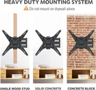 Have you ever felt the TVs take up a lot of room or feel very tiring to turn your neck when watching TV? Have you ever imagined that you can watch TV anywhere in your home? TV wall mounts will solve all your problems. Specifications: TV size range: 26” – 55” Weight rating: 88 lbs. Available VESA patterns: 100x100mm to 400x400mm, not for VESA 100x200mm, 300x400mm Note: This TV wall mount fits for wood studs or concrete wall installation only, not for drywall. Universal TV Wall Mount: Our articulating TV mount fits most 26,30,32,37,40,42,43,49,50,55 inch LED LCD OLED TVs with VESA patterns ranging from 100x100 mm to 400x400 mm and holds up to 88 lbs./40 kg. Designed for single stud, brick, and concrete walls, not for drywall alone application Full Motion for Optimal Viewing: The articulating TV wall mount bracket allows +/-90°swivel left or right to provide full-motion adjustment for ideal viewing. (note: max swivel angle depends on screen size) , +5°/-15° for anti-glaring, +/-3° post-installation adjustment for perfect TV leveling, and 2.5" to 18.9" wall distance adjustment for flexible movement and space savings Sturdy & Durable TV Bracket: Made of heavy-duty cold rolled steel and 100% welded by an automatic robot makes the whole wall mount TV bracket unit is sturdy and safe. Our swivel tv wall mount has been tested to hold 4 times its weight. Its adapter extends the mountable VESA pattern from 200x200 mm to 400x400 mm so that larger size TV can be mounted Easy Installation: Swivel TV wall mount with single stud design makes installation a breeze. All required mounting hardware and detailed graphical install manual are included, you do not have to be a professional to mount up your TV with this full motion 55 inch tv wall mount Friendly : Please don't hesitate to our friendly support team to ask pre-purchase or installation questions. Please check the VESA, TV weight, and possible blocked input before buying TV wall mount