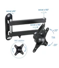 MA2720 is a articulating wall mount for LED LCD TV/Monitors, makes it easy to view your TV or Monitor from different angles. Tilt, swivel, extend function provide smooth adjustment for all directions. Specifications: 1. Compatible with VESA: 75 X 75mm, 100 X 100mm 2. Fits Screen size: 15-27'' 3. Tilt Range :15 degrees up/down 4. Pan/Swivel Range: up to 180 degrees 5. Profile: 6.3 - 38.1 cm 6. Maximum Load: 13kg(28lbs) 7. Color:black Features: 1. Great flexibility and adaptability. 2. This mount can swivel side to side and has an adjustment to tilt the screen up and down. 3. Removable TV plate designed for single-person installation. Post installation level adjustment to ensure perfect level. 4. Durable steel construction with black powder coated finish. Common mounting and screen attachment hardware included. Warranty & Support: 10-YEAR GUARANTEE from date of the original purchase. Damage or problem due to any manufacturing defect, please contact our after-sale service team by email with your purchase order ID and details of the problem. Our support team will deal with your problem as soon as possible when we are at work. TV Wall Mount - ideal for most 15" to 32" Monitor and 15" to 30" LED, LCD, and Plasma TVs that weigh up to 28lbs (13kg) Full motion - 360° rotation, 180° swivel, +/-20° tilt, extended to 15.74" from the wall, meet all of your viewing angles Compatibility - compatible with VESA 75x75mm and 100x100mm, fits for concrete wall/wood stud Features - removable TV plate designed for single-person installation, lasting steel construction for lifetime use Package - 1×TV wall mount, 3×velcro cable tie, 1×standard installation kit, 1×user manual Read before purchase: this bracket ONLY fit VESA 75x75mm and 100x100mm. If the VESA patern is over 100x100mm, we will recommend another model.