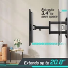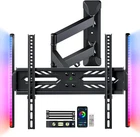TV Wall Mount with LED Lights, Full Motion TV Mount for 26-65 inch TVs, DIY TV Backlights with Music Sync, Swivel, Tilt, Single Articulating Arm, Max VESA 400x400mm, Holds up to 88lbs Adjustable LED System: The LED Lights can be controlled via the included remote or app. Over 60,000 DIY color options to set the mood for any movie or music genre. Easily select colors, change modes, adjust brightness, smart timing, bringing you an extremely dynamic and immersive TV viewing /gaming experience Wide Compatibility: The TV Wall Mount fits 26-60 inch flat/curved TVs and holds up to 88lbs of weight. With VESA pattern from 75x75mm to 400x400mm. Our stand is compatible with TV products such as Samsung, Sony, Sharp, TCL, LG, Vizio, etc. Please verify the size, weight, and VESA pattern of your TV before purchase Full Motion for Optimal Viewing: Tilting your TV screen up 5°and down 15°to reduce glare, swivel tv ±90°, level adjusts ±3° for maximum viewing flexibility. Retract ” for space saving, extend ” from wall for optimal positioning. The TV Wall Mount can help you feel comfortable during tv time at family gatherings Space-Saving Corner Design: Tailored for corner and flat spaces, our wall mount ingeniously maximizes your room layout. Say goodbye to awkwardly placed TVs and welcome a sleek, corner-fitted solution, you can Install this TV mount in the bedroom, home gym, kitchen, and more Easy Installation & Robust Structure: Our TV bracket includes clear instructions, labeled hardware, a bubble level, and installation positioning paper for a swift installation on 16" or 24" wood studs or concrete/brick walls (not suitable for drywall alone). The robust structure, confirmed through weight-bearing tests, SATISFACTION GUARANTEEs a secure mounting experience for your TV. Enjoying an Immersive Visual Experience with TV Wall Mount