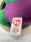 Get your hands on this incredible Ty Beanie Baby plush toy featuring the iconic character The Incredible Hulk! This 6" plush toy is the perfect addition to any collection, with its vibrant green and purple colors bringing the character to life. Made by Ty, this plush is guaranteed to be of high quality and sure to provide hours of playtime. Whether you're a fan of the Marvel character or simply love collecting Beanie Babies, this plush toy is a must-have. It's perfect for children and adults alike, and is sure to be a hit with anyone who sees it. Don't miss out on the chance to add this amazing piece to your collection! Great Condition. Tag missing. No stains or smell.