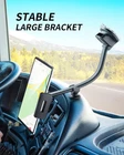 Gooseneck Design: The flexible 13'' gooseneck arm allows you to effortlessly shape it to your liking, so you can position your tablet/ iPad/ GPS navigator right where you need it. Perfect for drivers of trucks, pickups, and large SUVs. With the device in front of you and within reach, you can stay focused on the road ahead while still having access to important information. Dual Fixed Structure: Our car tablet holder features a strong suction cup that firmly attaches to your vehicle's windshield or dashboard, providing a secure hold for your tablet even on bumpy roads. Besides, the holder comes with an extra dashboard support base to further enhance stability and minimize any unwanted wobbling, ensuring a smooth and enjoyable ride for you. Washable & Reusable Suction Cup: High-viscosity silicone material is used to create the suction cups, which can be washed and dried to restore their suction power when their viscosity becomes insufficient. However, please note that suction cups can only be attached to smooth surfaces, and if the surface is uneven, please use 3M adhesive pads (included) to ensure proper adhesion due to the vacuum suction principle. Flexible Rotation: Our car mount for iPad features a 360-degree rotating ball head, giving you the flexibility to adjust for iPad/Air/Mini/Galaxy/Fire HD/Kindles/Switch tablet to your preferred orientation for a comfortable and safer driving experience. Broad Compatibility: The tablet car mount features an adjustable width ranging from 3.7 to 7.5 inches and a depth of 0.8 inches, a convenient loading button and a reliable swivel spring locking system, making it a versatile choice for different models. Compatible with iPad 10th generation/iPad Pro 9.7/mini 2 / 3 / 4/Air / Air 2, Google Pixel C, Samsung Galaxy Tab S2/Tab A 8.0 / E9.6 / A10.1 / A7.0 / lite 7.0, etc. For 4-7 inches Phones: Also suitable for iPhone 13ProMax 13Pro 13 13Mini 12ProMax 12Pro 12 12Mini 11 11Pro 11ProMax XS Max XR X 8+ 8 7+ 7 6S+ 6S 6 5S, Pixel 5a 5 4 4XL 4a 3 3XL 2 2XL 1, Nexus 5 5X 6P 6, Sony, LG, Nokia, Moto & Other smartphone with screen between 4-7”.