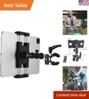 Tablet Holder for Treadmill/Spin Bike/Stroller/Wheelchair/Golf Cart/Poles/Music Stand/Stationary Bike,Compatible with " iPad/Nexus/Fire HD//LG G 【Sturdy & Anti-scratch】:Tablet mount arm are made up of super crab clamp and articulating magic arm,both of them are aluminum alloy and stainless steel material,sturdy,durable,super crab clamp build-in rubber pad to anti-scratch,clamped the pole tightly,tablet clamp is high quality of ABS material,clamp feet build- in rubber pad to hold iPad without slipping. 【Adjustable Angle】:Allowing to each end ball head 180°tilt freedom by twisting joint knob of articulating magic arm,also it can lock ball heads in place to keep tighten,on top of arm inch /17mm stainless steel ball head which support tablet clamp 360°rotation flexible,the high quality of construction design,reliability tablet bracket will help to you work more convenient. 【Adjustable Jaw】: Super crab clamp adjustable jaw diameter is inch/45mm,the tablet mount arm can be clamped rod of diameter inch / 40mm (like pipes, tripods,desks, handlebars) etc,suitable for stroller,treadmill,elliptical,spin bike,shopping cart,wheel chair,music stand,indoor stationary bicycle,golf cart. 【Universal】: Tablet clamp can be stretched,compatible with inches devices:e-Reader,Fire HD,iPad Air 2/3/4/5/6,iPad mini 2/3/4/5/6/,iPad Pro ,iPad2019/2020/2021/2022,Google Nexus 7/8/9/10/11,LG G Pads/ 【Easy to Use】: For tablet stand is lightweight and portable,easy to use for users,no any tools to drilling holes,operation is so simple without you are not satisfied with our product,feel free to contact me and you'll get resolution or new . Tablet Holder for Poles Stroller / Treadmill / Spin Bike / Wheelchair super crab clamp and articulating magic arm are aluminum alloy and stainless Steel material,sturdy, durable. Super crab clamp and tablet clamp build- in rubber pad to anti-scratch, firm and stable. High quality of construction design ,support muti-angle adjustment, more convenient. Super crab clamp adjustable jaw suitable for stroller,treadmill,elliptical,spin bike,shopping cart handlebars. The video showcases the product in video guides you through product video compares multiple video shows the product being unpacked.