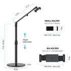 【Universal Fit】 This tablet&cellphone desktop stand includes two holders, which is applicable to 3.5-11" cellphone or tablet, suitable for teaching, document display, live broadcast, video recording, daily use and other scenes. 【Adjustable Height&Angle】 The holder can swivel 360 degree, easily adjust your device to the most comfortable position. The height adjustable range: 9.8". The longest distance that the folding arm can extend is 13". Helps to fix the posture and reduces the pressure on the neck, shoulder and back. 【High Quality】 The sturdy round iron chassis can ensure stable use. The shaft is made of high-quality aluminum alloy, combined with an improved second-generation hinge mechanism, providing a more stable experience. 【Fashionable and simple design】 The products are CNC precision processed, and the surface has been metal-oxidized, simple design and fashionable style. Charging ports are reserved at both ends of the clip. 【Easy Installation】The complete product can be obtained quickly with simple assembly, which is very easy to install. During use, the tension point on the folding arm can be adjusted to change the tightness of the arm.