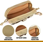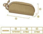 Product Description Features: 1. Tactical Eyeglasses Case 1000D Nylon Molle Hard Pouches Sunglasses Carrying Case 2. Classic design with MOLLE system: MOLLE style attachment straps gives a lot of variety to clip on other items like belt, vest, backpack, platform, etc. 3. Multiple Mounting Options: Attach Eyeglass Caseto belt, vests or any molle modular bags with vertical molle strap/horizontal hook and loop - loop panel & hook up on to D-rings with rear plastic clip, you can always get quick access to your eyewear. 4. Hard Shell Glasses Case: 1000D Nylon outter material, provides sufficient protection to stop glasses from being broken by lighter pressure. Specifications: (-1) Material: 900D Oxford Cloth Weight: 100g Size: approx.2.75" x 6.69" x 1.96" Color: Black/CP/Khaki Application scenes: Outdoor, climbing, hiking, camping, mountaineering and etc. Specification: (-2) Material: 1000D nylon Weight: 98g Buckle closure Nylon frame Color: Army Green/Khaki/Black Size: 6.0" *1.97" *2.37", Great for Eyeglasses /Sunglasses /Reading Glasses Package Includes: 1 x Tactical Glasses Pouch