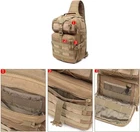 • Adjustable Strap : The adjustable strap allows for a comfortable fit, making it easy to wear for extended periods. • Versatile Occasion : Perfect for a variety of outdoor activities, including camping, hiking, and travel. • Durable Material : Made with high-quality Oxford material, this backpack is built to last and withstand tough conditions. • Multiple Compartments : With multiple compartments, this backpack provides ample space to store your gear and keep it organized. 【Feature】 1.MOLLE SYSTEM: MOLLE webbing system is ideal for attaching knives, flashlight holster, phone pouch, water bottle bag, and other MOLLE gear. The hook&loop on the front of the MOLLE Sling Backpack is designed for your own customized patch. 2.ADJUSTABLE STRAP: The shoulder sling is adjustable in length to fit people in different shapes and sizes, and there is no limited backward arm movement. Two clips on the two sides make it switch between the left or right-hand side, suiting your body shape. 3.VERSATILE 3 WAYS CARRYING STYLE: This bag can be used as a shoulder bag, a chest sling-back sling, or you can simply hand-carry it. It comes with a detachable and adjustable shoulder strap with an innovative single ambidextrous sling shoulder design. 4.MULTI-PURPOSE: Used for EDC sling pack, chest bag, handbag, tactical versipack, pouch, first-aid kit, diaper bag, and so on. It is very handy and convenient. Great for indoor and outdoor uses including camping, hiking, hunting, sports events, tools, etc. 5.SECURE & COMFORTABLE FIT: Secure to your back with an adjustable chest belt and hip belt clasp. Padded and adjustable shoulder straps relieve pressure on shoulders while carrying heavy loads. 6.BREATHABLE MESH: Breathable mesh backing provides a comfortable feel in hotter weather. This bag features a heavy-duty carry and drag handle and has double zipper pulls on every compartment for easy access. 【Notice】 3.Package Included:I bag only 【Picture】
