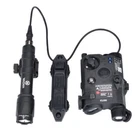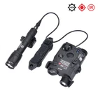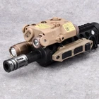 NAME:PEQ-15 MATERIAL:Nylon plastic COLOR:BK/TAN INSTALL:20mm rail WEIGHT:150g LUMINANCE:200lm POWER:Laser 5mw BATTERY:16340/CR123A*1(battery not included) CATEGORY:Red laser+IRfill light+white light Green laser+IR fill light+white light Blue laser+IR fill light+white light FEATURES:Lasermomentary-on,Lasercontstant-on IR fill light momentary-on, IR fill lightcontstan t-on,White light momentary-on,Whitelightc ontstant-on, White light strobe,Laser&White light contstant-on, Laser&White light momentary-on Name: M600C Tactical Flashlight Color: Black/Tan Material: Aluminum alloy Weight: 161g Lumen: 600lm Installation: 20mm guide rail The product does not come with a battery, please purchase it yourself.