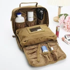 Description toiletry bag for men, mens toiletry bag, mens travel bag toiletry, travel toiletry bag for men, mens shower bag, mens bathroom bag, shaving bag, toiletries bag for men, toilet bag for men, men's razor bag, dopp kit for men, large capacity sports shower with multi-pocket brown with wet pocket Multi-pocket Independent Spacing: This men's toiletry bag has multiple compartments; large independent mesh pockets for towels and body wash, and small compartmentalized pockets for razors and mouthwash, each with independent elastic loops Large Capacity: Size: 9.5 x 7.9 x 2.7 inches; This mens toiletry bags for traveling is large enough to hold your essentials, from body wash, face wash, toothbrush, floss, mouthwash to razors; the wide opening makes everything easily accessible Sturdy Materials: Made of quality canvas fabric, this mens toiletry bag for traveling is durable and easy to clean; the rectangular shape and durable construction allows it to be placed upright Practical Design: This large toiletry bag has a convenient carry handle on the side; the MOLLE design of the front pocket allows you to attach pouches, water bottle pockets and accessories, and the back zipper has an organizer hook for easy toiletry bag placement Mens Toiletry Travel Bag: This men's shaving bag is lightweight and versatile; this travel toiletry bag is suitable for travel, camping, gym, tool storage, medicine storage