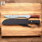 Need a machete that combines intimidation, cutting power, and rugged durability in one savage package? Whether you're blazing trails, surviving the wild, or showing off the ultimate display piece, this tomahawk-style machete dominates every situation. Its aggressive sawback spine, sleek cutouts, and razor-sharp blade deliver brute force and tactical finesse in one grip. πͺ Full Tang Construction β Built from a single solid piece of stainless steel for maximum durability π² Curved Cutting Edge β Ideal for slashing brush, limbs, or targets with precision πͺ Sawback Spine β Doubles as a saw for wood or rope in survival situations π Unique Blade Cutouts β Lightweight, stylish, and menacing design π³ Polished Wood Handle β Comfortable grip with triple-rivet security π§ Versatile Use β Great for hiking, hunting, outdoor survival, or collection This tomahawk machete isnβt just for show β itβs made to perform. Itβs the kind of tool you keep within reach because you never know when you'll need serious steel. Buyer must be 18+ and comply with all local, state, and federal laws.