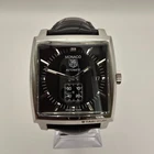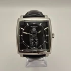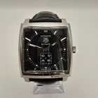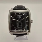 Superb & stunning example of this iconic Swiss TAG Heuer Monaco WW2110-0 Stainless Steel Automatic Calibre 6 Men's Watch with Sapphire Crystal, Date Indicator, Small Second Subsidiary Dial & Exhibition Case . Very good condition for age. Please see pictures. Excellent aesthetic condition, no disfiguring marks or knocks. Dial in excellent condition, Case & Bezel in very good condition. Crystal in very good condition. Strap is in worn condition. Please see pictures. Full working condition. Comes with Watch Authentication Card. Engraving on Back Case. Rare watch and a Collectors Item. Please note the watch does not come with the original box & papers. Watch Only. Description below: [Brand] TAG Heuer [Model] Monaco WW2110-0 [Condition] Very good [Movement] Original Swiss TAG Heuer Calibre 6 Automatic [Dial] Original Black Dial [Crystal] Sapphire [Band Length Inner] fit 20 cm wrist (approximate) [Case Size] without crown 38 mm × lug to lug 40 mm × thickness 11 mm (approximate) [Case Material] Stainless Steel [Band Material] Original TAG Heuer Leather Strap with TAG Heuer Clasp - Worn in places [Crown] Original Crown [Function] Quickset Date at 3 o'clock position [Features] Exhibition Case [Accessories] Watch Authentication Card Watch will be carefully shipped via registered mail with tracking, in protective shock-resistant packaging, fast and secure. Customs information: Any other costs or charges such as customs or import duties, customs clearance and handling may also apply during the shipment of your lot and will be charged to you by the involved party at a later stage if applicable.