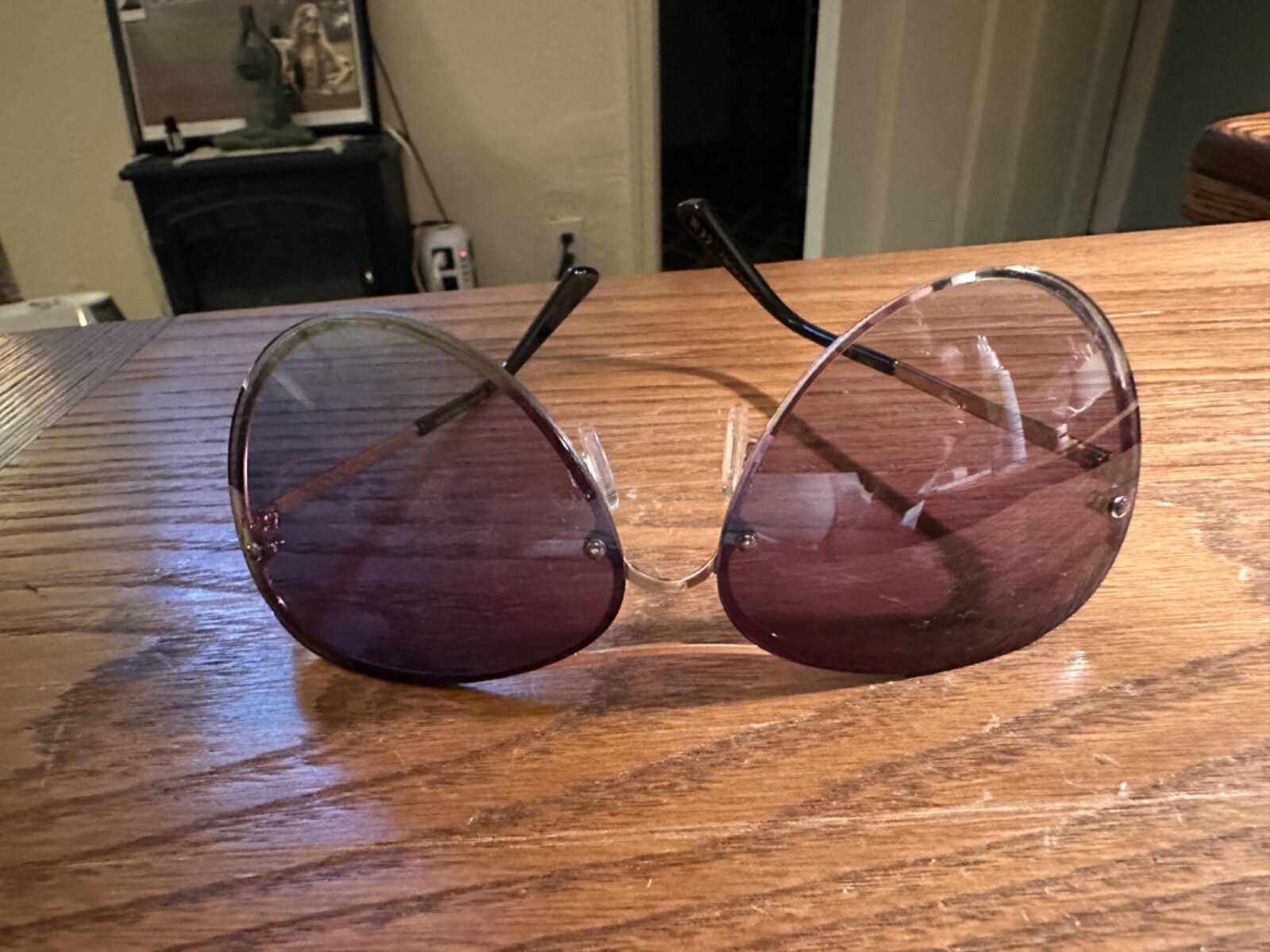 These Tahari Aviator Sunglasses feature a gold metal and plastic frame with nude brown gradient polycarbonate lenses. The oversized and lightweight design adds a trendy touch to the aviator style. The lenses provide 100% UV protection, making them both stylish and functional. Perfect for women looking for a chic and modern accessory for sunny days.