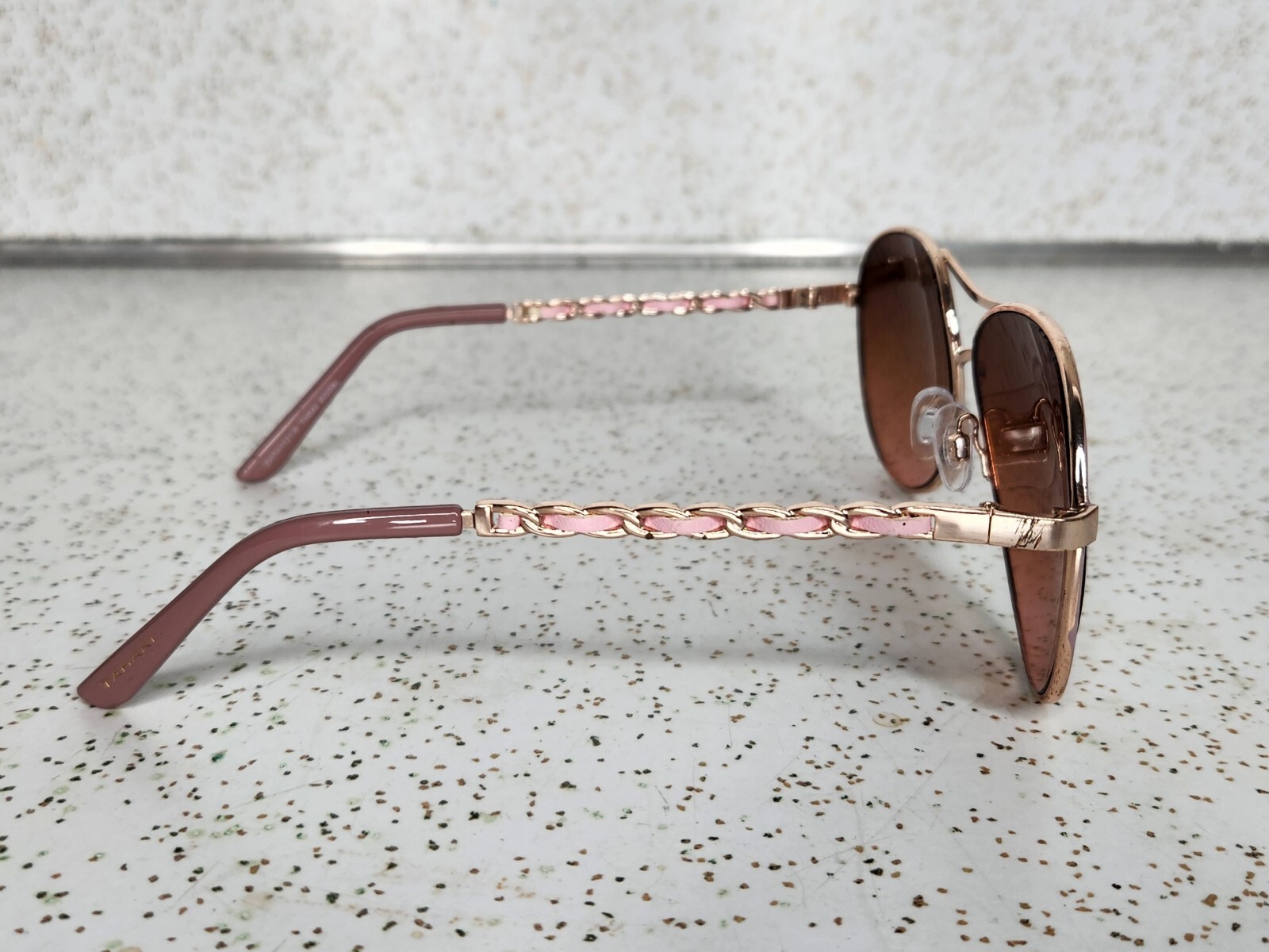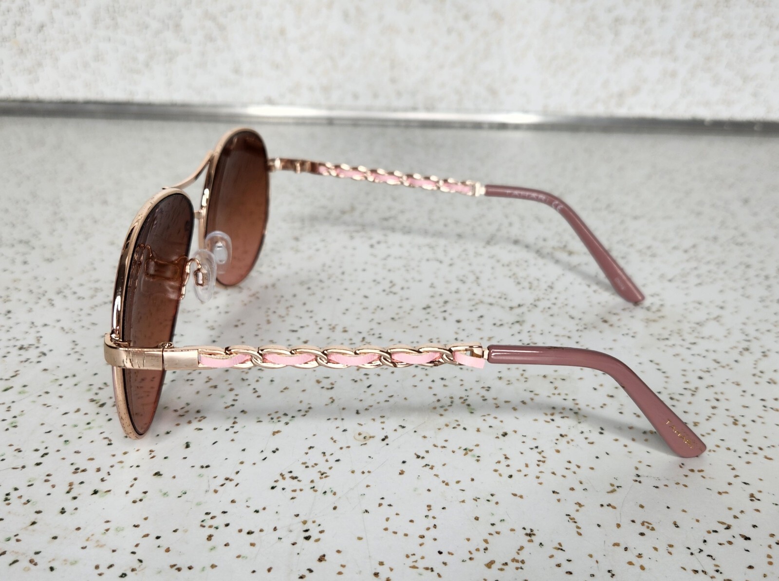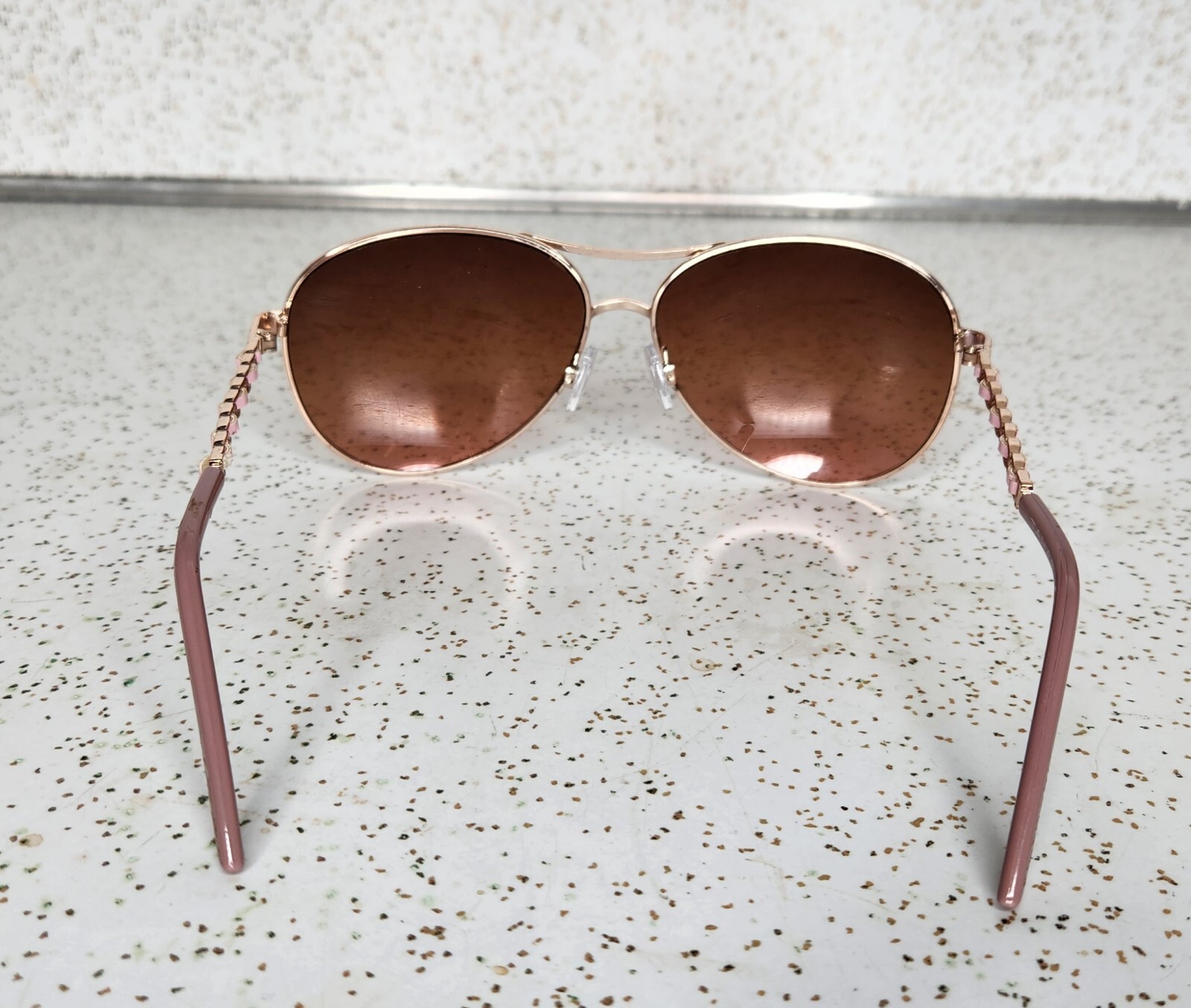 Has a very small chip on the inside of the right lense that is hard to notice when worn and with the naked eye since it is so small.