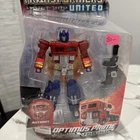 Optimus Prime is a fictional character from the Transformers franchise. He is the leader of the Autobots and a prominent character in the Transformers movies and TV shows. In the Transformers United series, he is depicted as a multicolor action figure made of ABS material that can transform into a robot. This Optimus Prime figure is part of the Transformers United series and is manufactured by TAKARA TOMY in Japan.