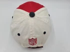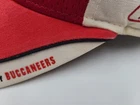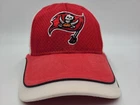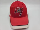 The tag says one size fits all, but it seems best suited for smaller sized heads. Has stains/discoloration all around the hat as seen in photos. Tampa Bay Buccaneers Reebok Distressed Adjustable (Seems Small) Hat Cap NFL Red. EACH ADDITIONAL HAT PURCHASED IS ONLY $1 ADDED SHIPPING!