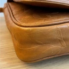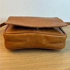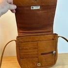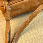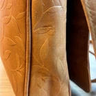 Tan genuine leather crossbody bag with an intricate embossed leaf pattern throughout. This versatile organizer purse features a magnetic snap flap closure that opens to reveal a built-in wallet section with multiple card slots and a small zippered pocket. The adjustable long shoulder strap allows for comfortable crossbody wear. The interior is lined with a durable brown fabric and includes an additional zippered compartment for secure storage. Brand: Unbranded (RR Patent) Material: Genuine Leather Color: Tan/Brown Pattern: Embossed Leaves Closure: Magnetic Snap Hardware: Silver Tone Strap: Adjustable Crossbody Interior: Fabric Lined Origin: Made in India Keywords: Boho, Nature, Botanical, Cottagecore, Earthy, Hippie, Festival, Tooled Leather, Organizer Bag, Minimalist, Vintage Style, Fall Fashion, Everyday Carry, Small Crossbody, Leafy Motif