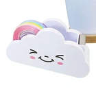 Feature: 1. Desktop Tape Dispenser is in the shape of a beautiful cartoon cloud with smiling expression, a cute and practical stationery assistant 2. Tape Dispenser comes with a roll rainbow tape, which is very cute. There is no need to buy separately. Enrich your school office stationery supplies 3. The tape can be cut easily and quickly, eliminating the hassle of using scissors 4. The adorable Cloud Tape Cutter is used to store your tape, keep your desktop well organized 5. Funny cloud tape dispenser can be placed on the table top, book shelf as decoration, a fun and adorable addition to your work space or desktop 6. Tape with dispenser are perfect for office, school, and family activities, scrapbooks, art projects, etc. The rainbow tape and cloud tape dispenser can be used to make your day-to-day easier in closing boxes, wrapping gifts, pasting notes, sealing documents Specification: Item Type: Cute Tape Dispenser Name: Cloud Tape Cutter Material: PP Size: Approx. 11.3 x 4.3 x 6.1cm/4.4 x 1.7 x 2.4inch Tape shaft diameter: 2.5cm Package List: 1 Roll Rainbow Tape 1 Tape Dispenser